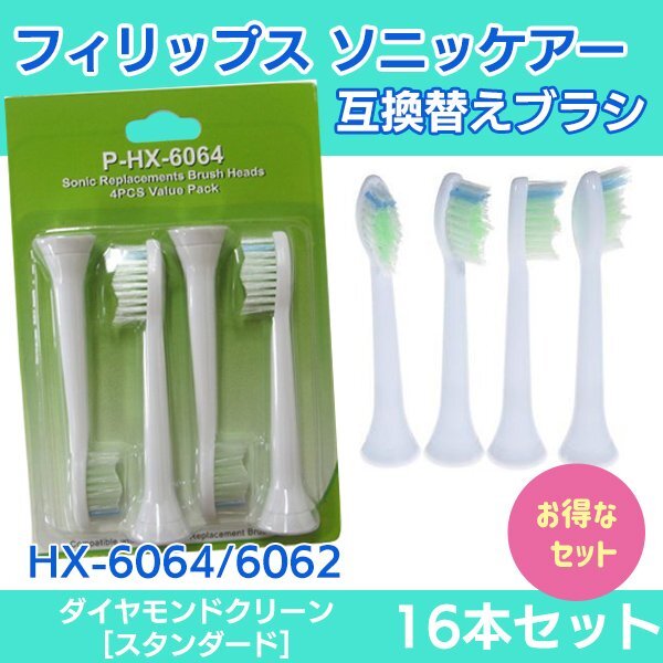 送料無料 PHILIPS フィリップス ソニッケアー HX-6064/6062 4本入りX4セット 16本 /ダイヤモンドクリーン ソニケア 互換替えブラシ