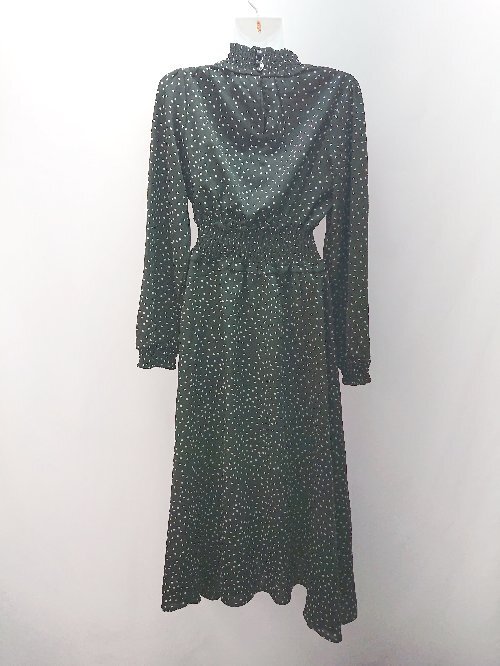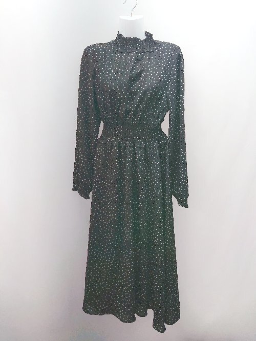 ◇ GRL グレイル ドット 水玉 フェミニン ふんわり さらさら生地 長袖 ロング丈 ワンピース サイズM ブラック レディース E