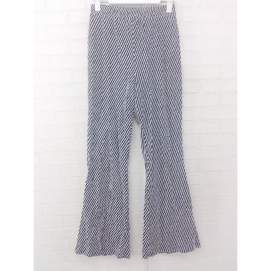 ◇ select MOCA セレクト モカ 総柄 ウエストゴム フレア パンツ サイズM ネイビー ホワイト系 レディース P