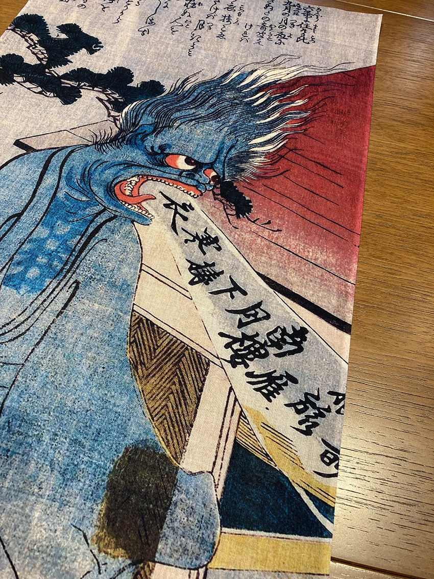 最高級の手ぬぐい生地の特岡に反応染料で捺染プリントしています。