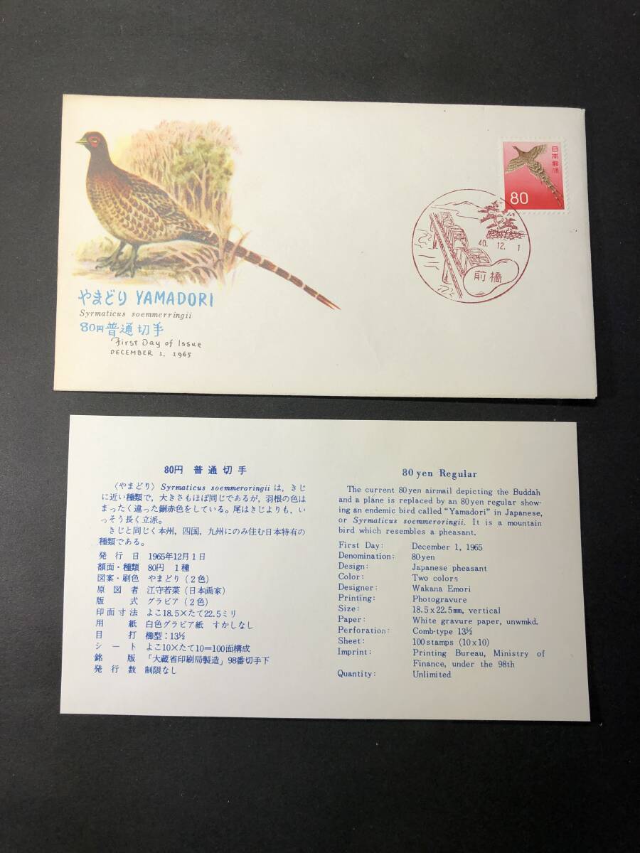 ★FDC 初日カバー★普通切手 第2次円単位 80円「やまどり」 NCC版 昭和40年発行 Y9613