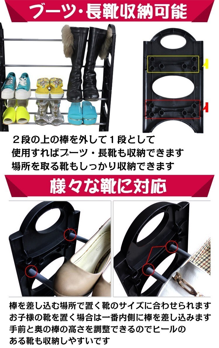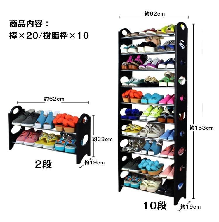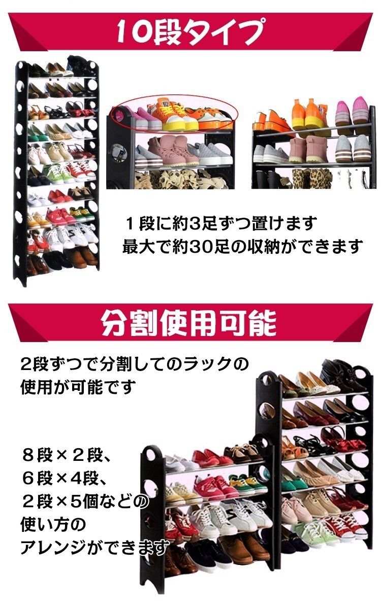 ■10段タイプで1段に約3足ずつ置けます