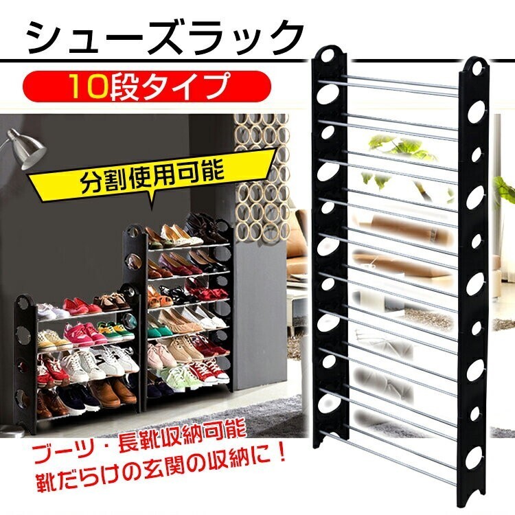 シューズラック スリム 靴箱 10段 30足収納 下駄箱 整理 シューズボックス 省スペース 薄型 組み立て 分割可 玄関 zk248