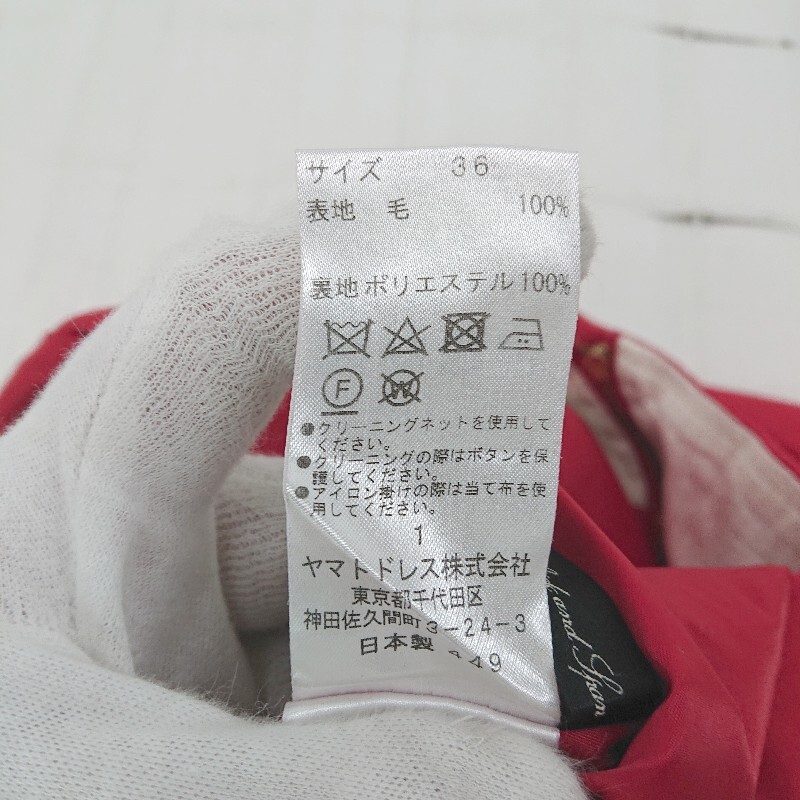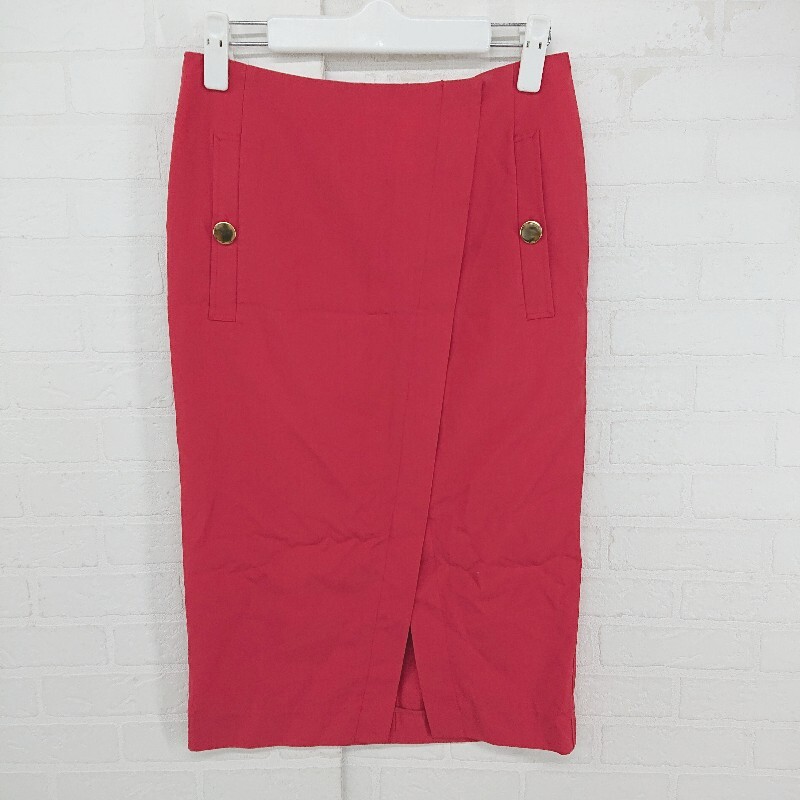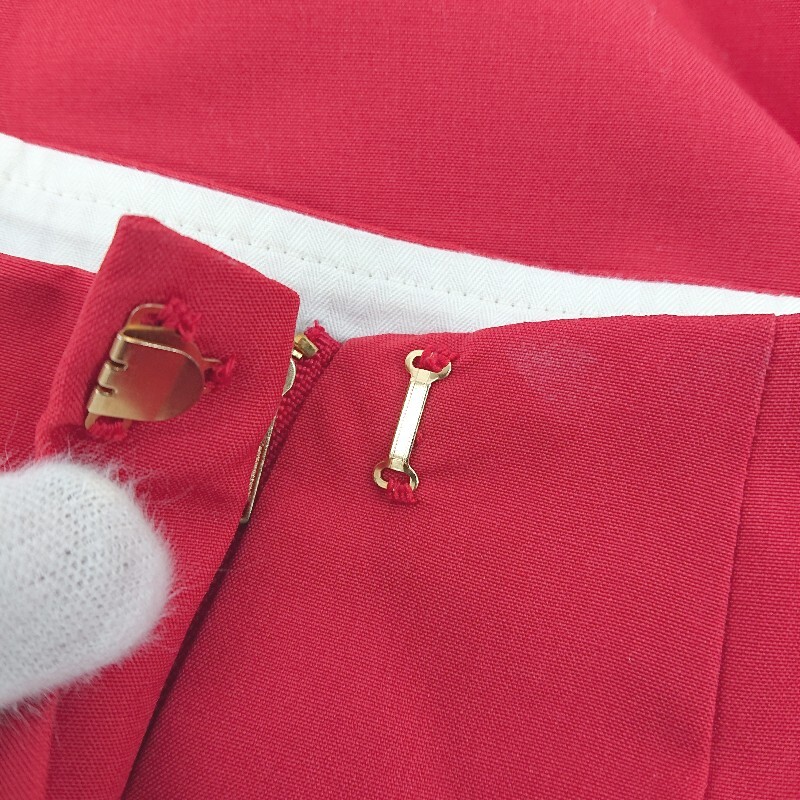 ◇ Spick & Span ORIVAR SAT スリット 金ボタン 膝下丈 タイト ペンシル スカート サイズ36 レッド レディース E