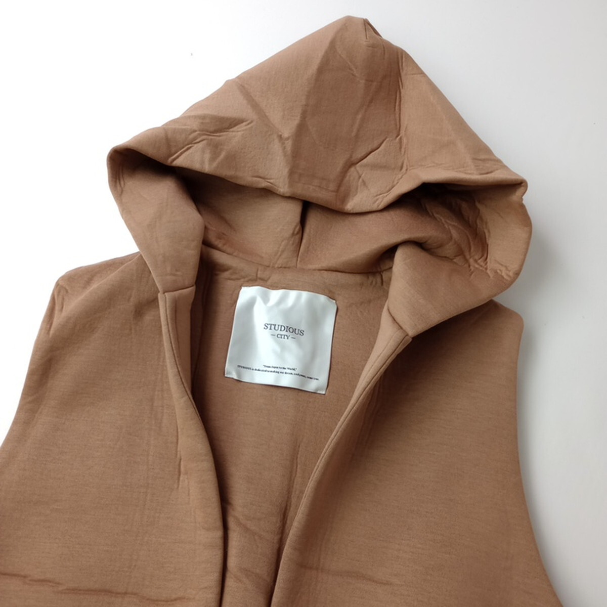 STUDIOUS CITY ステュディオスシティ「シンプル&おしゃれに着こなせる♪」ビッグ ロング フード ジレ 羽織 Free ライトブラウン(AM+0341)