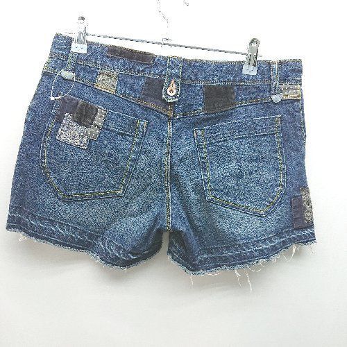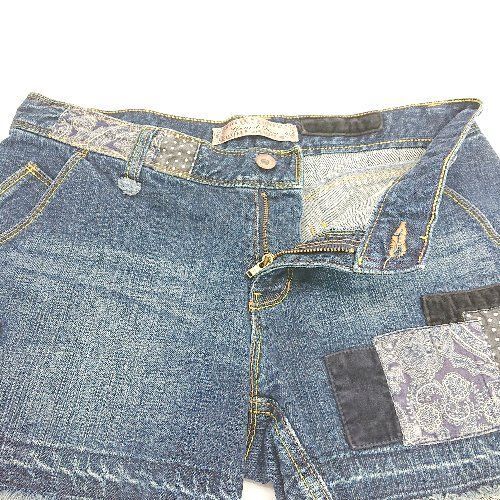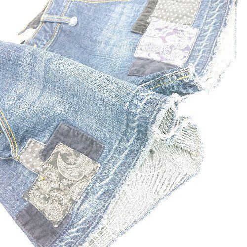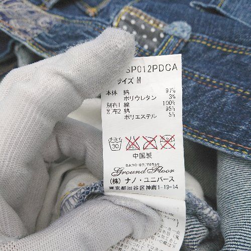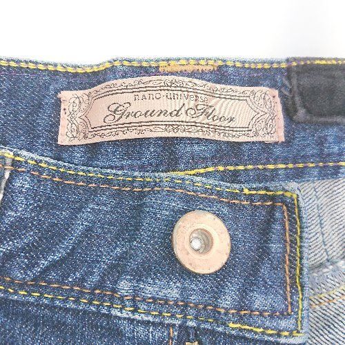◇ nano universe GROUND FLOOR カットオフ 異素材 ショート丈 ステッチ パンツ サイズM ブルー系 レディース E