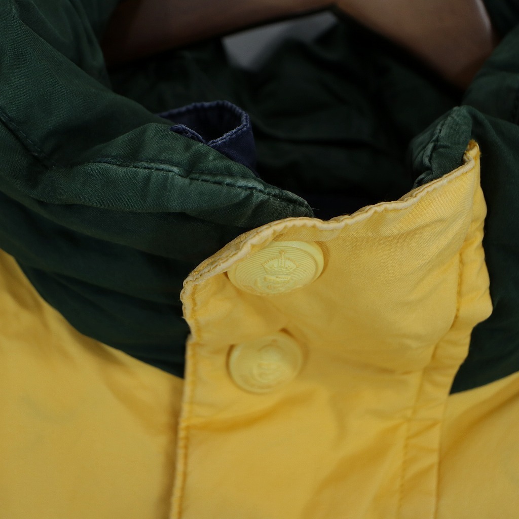| 【商品管理番号】 O4448 【ブランド】 NAUTICA/ノーティカ 【サイズ】 L 【実寸サイズ】 着丈:約66cm 身幅:約73cm 裄丈:約90cm 袖下丈:約53cm 【主な素材】 表地 : コットン 中綿 : ダウン 【色】 グリーン 【仕様】 90年代 フード収納可能、フードドローコード 防寒 アウター リバーシブル 【状態】 汚れ:袖、袖先、腹部、裾 | |||