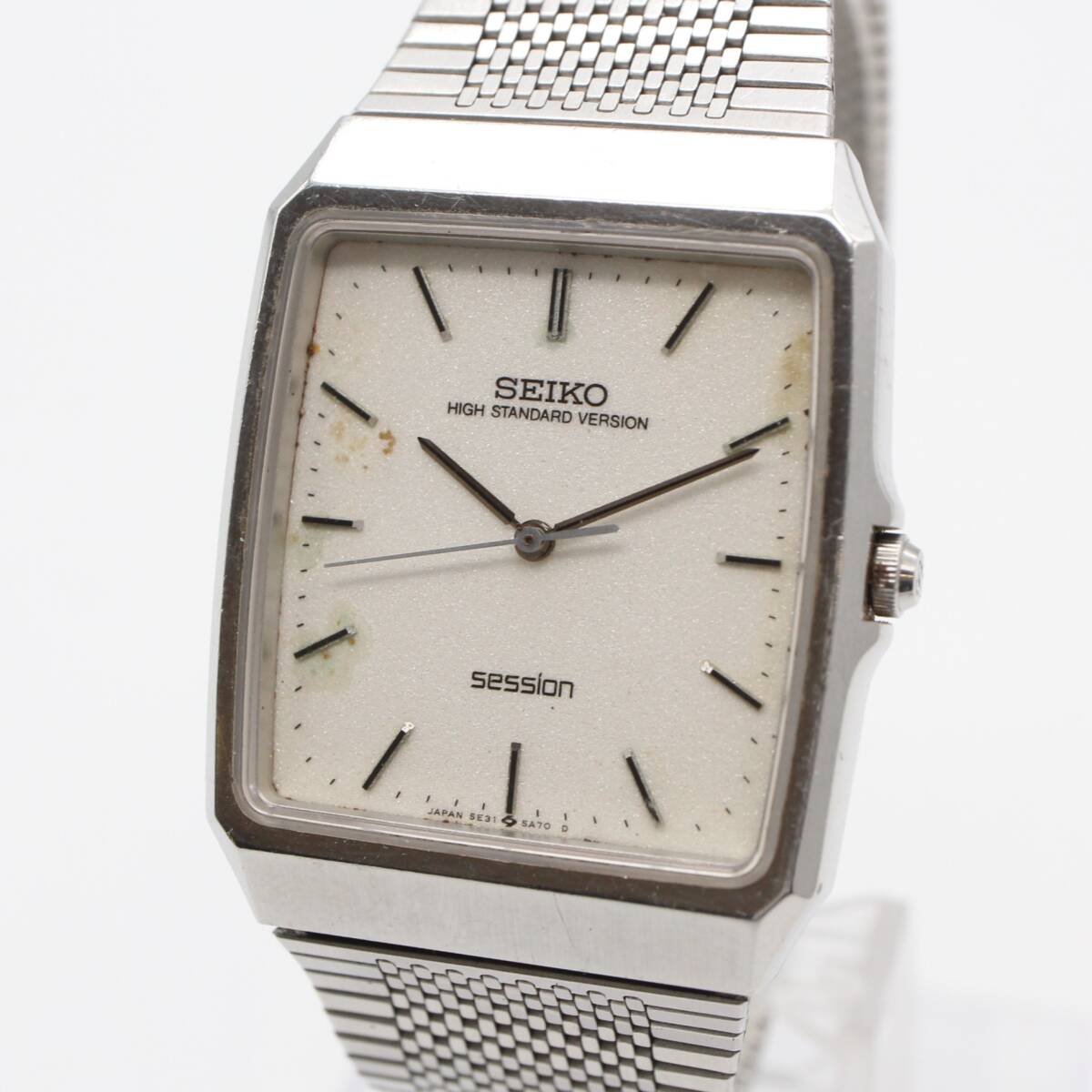 稼働 【SEIKO セイコー】 SESSION セッション 5E31-5A70 クォーツ/QZ メンズ 腕時計 シルバー文字盤 スクエア