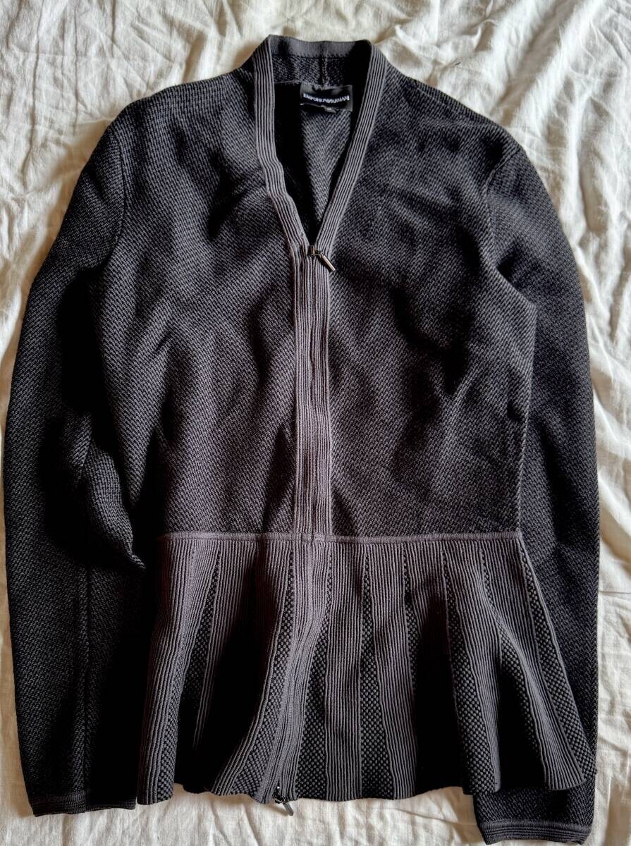 エンポリオアルマーニ EMPORIO ARMANI ニットジャケット ノーカラージャケット アウター ジップアップ 40 M グレー 高級タイプ
