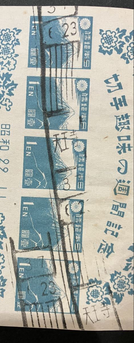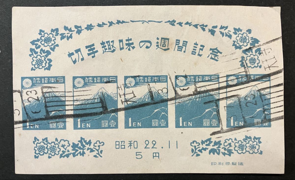[未使済]切手趣味の週間記念 昭和22.11 5円 小型シート ローラー印(天王寺 昭和37.6.23)