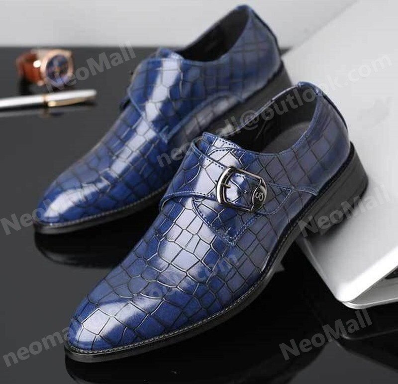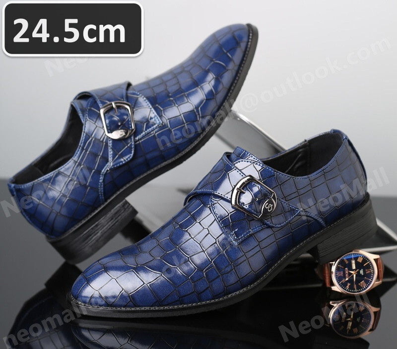 ワニ柄 型押 メンズ ビジネスシューズ ブルー サイズ 24.5cm 革靴 靴 カジュアル 屈曲性 通勤 軽量 インポート品【n036】