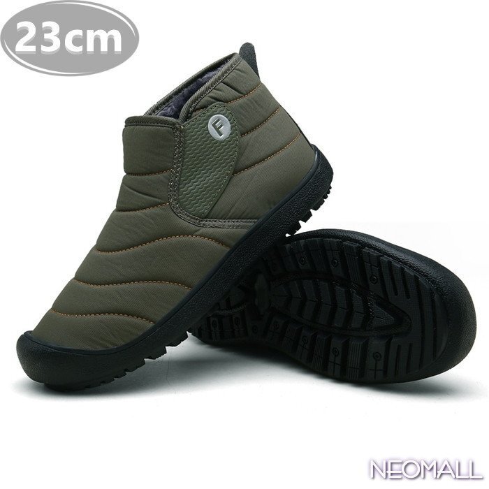 ユニセックス スノーシューズ 【869】 23.0cm オリーブ ムートンブーツ スニーカー ウィンターブーツ 裏起毛 防水 防寒 防滑 冬用靴 綿靴