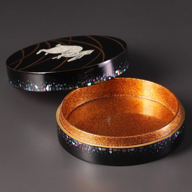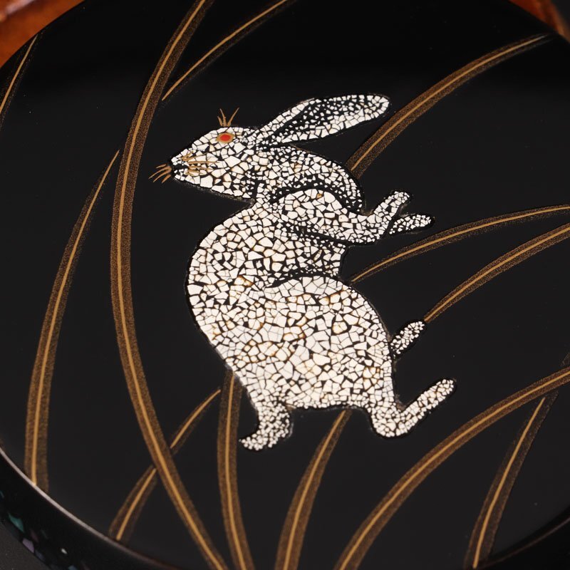 柔らかな白の兎が印象的。側面や内側は煌びやかな仕上がりです。 ★商品は坂一男の作品である事を保証致します。 |