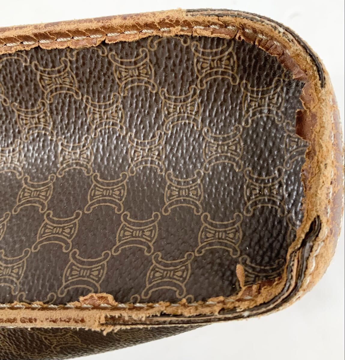 | 商品説明 | ブランド・メーカー:セリーヌ 素材:PVC(ビニール) 採寸:マチ【平置きの状態での直線距離】5cm 高さ【平置きの状態での直線距離】18cm 幅【平置きの状態での直線距離】25cm 素人採寸の為、誤差はご容赦くださいませ。 状態:全体的に擦れがあり、角に破れが御座います。 ご理解の上、ご入札くださいませ。 |