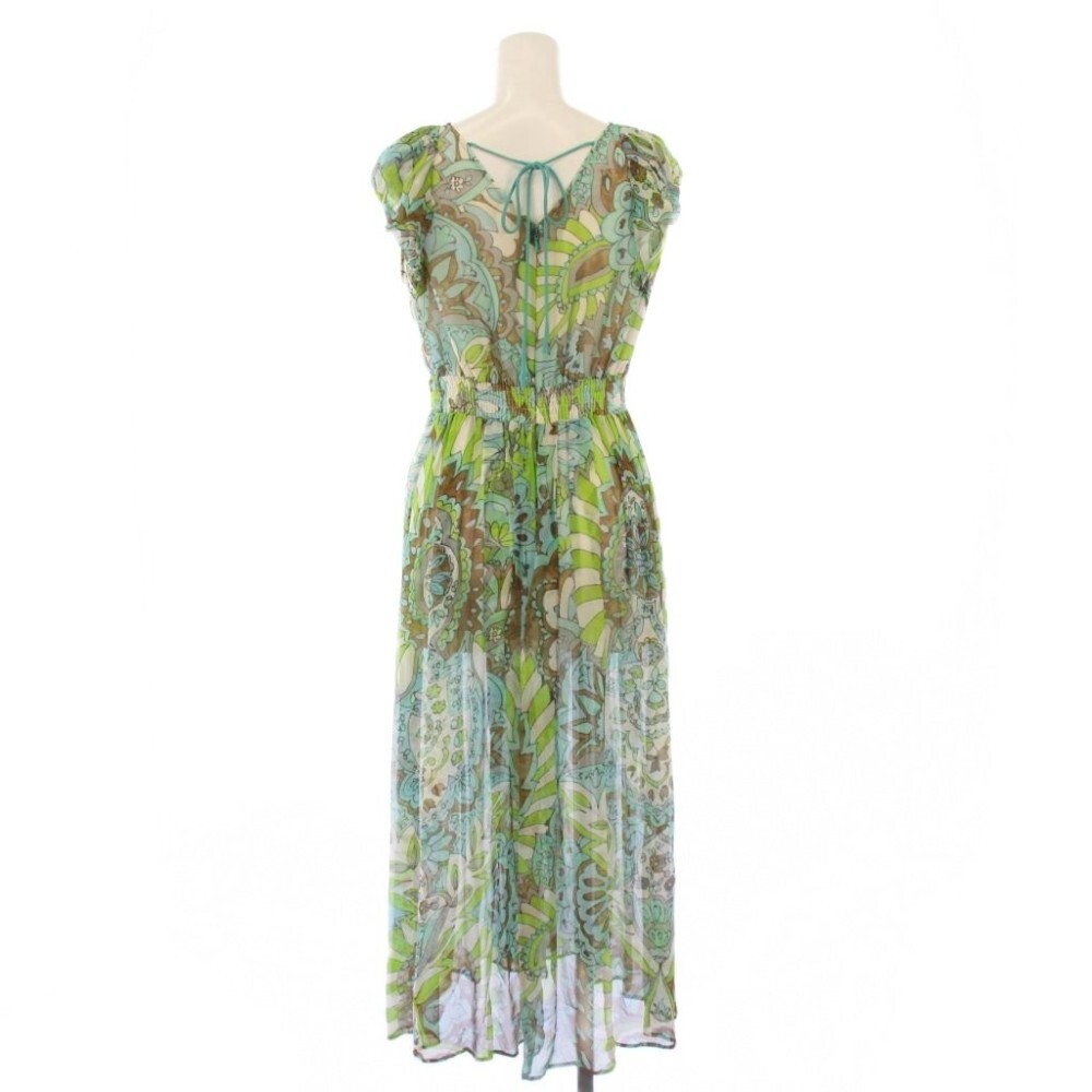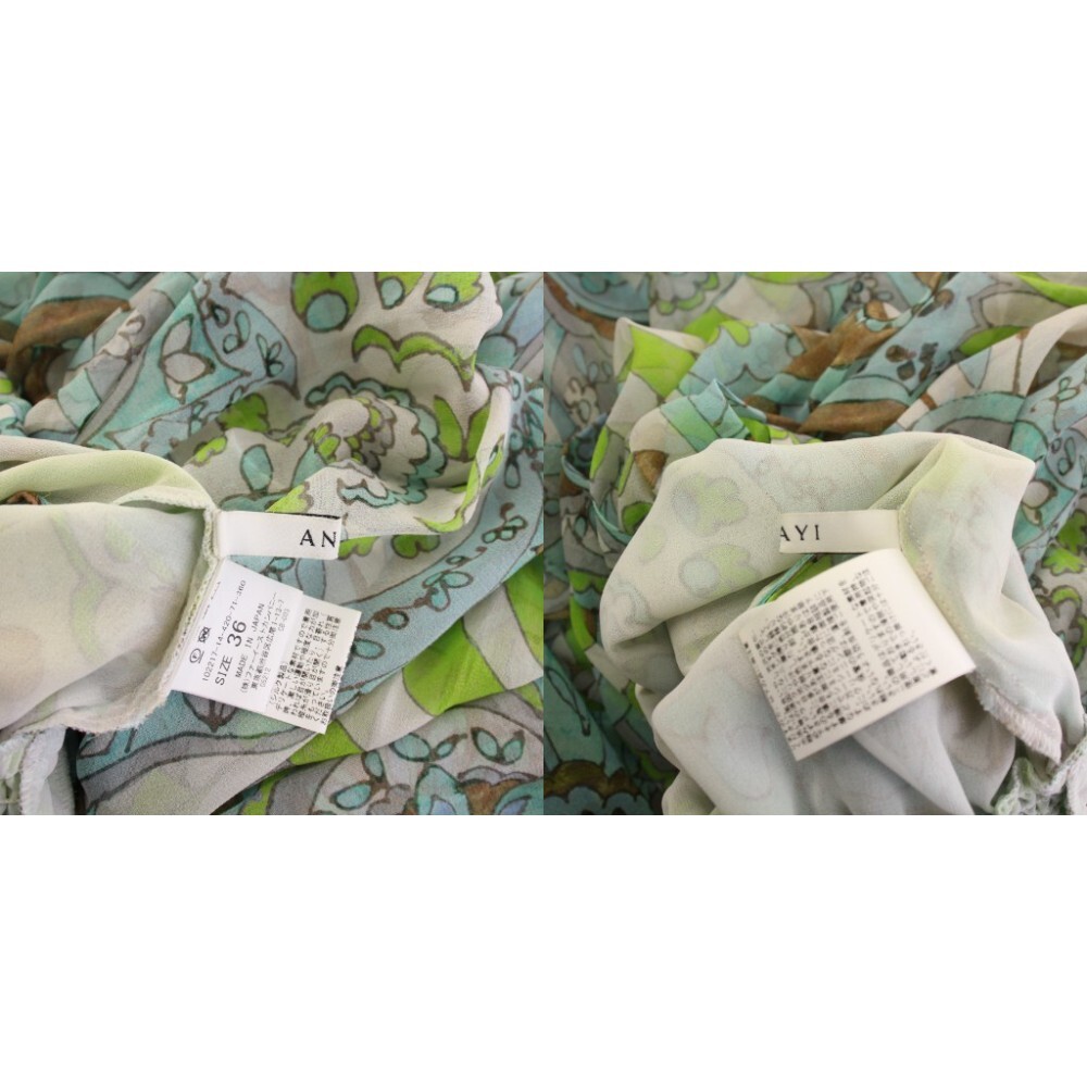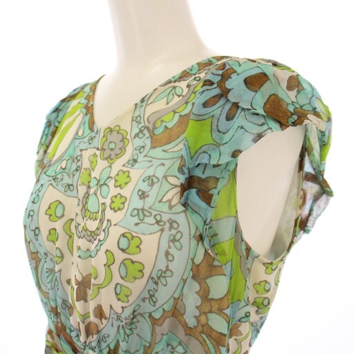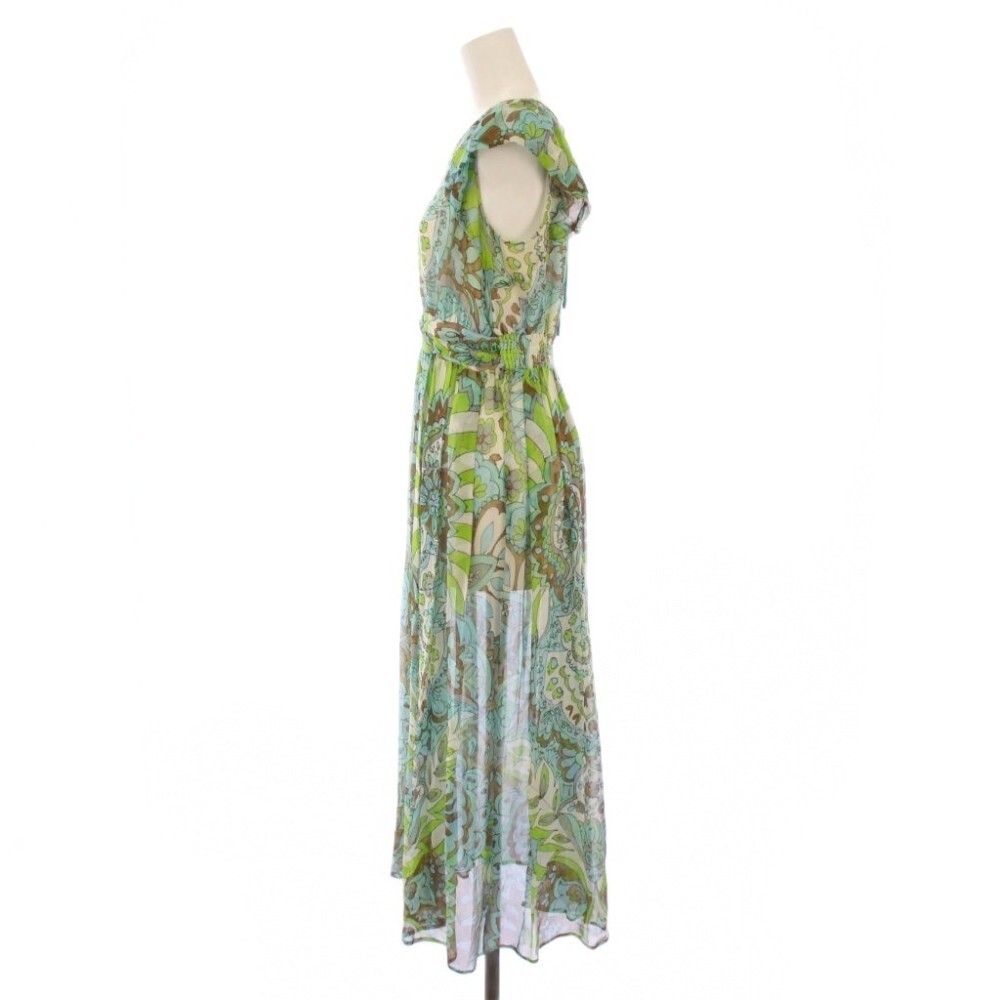 アナイ ANAYI アラベスクプリントマキシフレアワンピース ミモレ ロング 半袖 クルーネック シアー シースルー シルク 36 緑