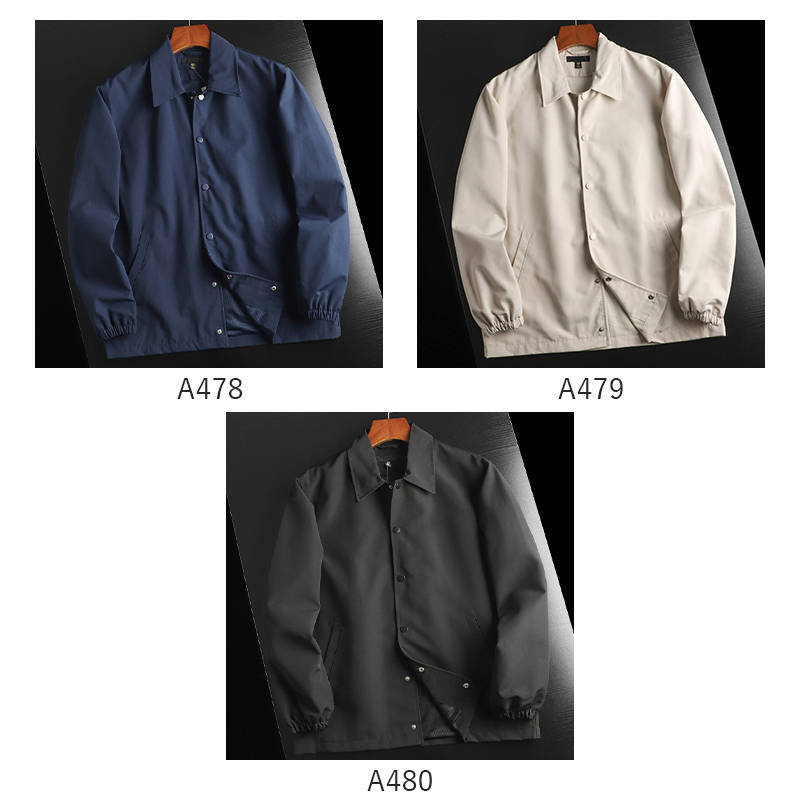 A480-M黒色 コーチジャケット 撥水 メンズ 折り襟 ジャケット 防風 通気 裏地 春秋 新品 カジュアル シングルブレスト アウター ブルゾン