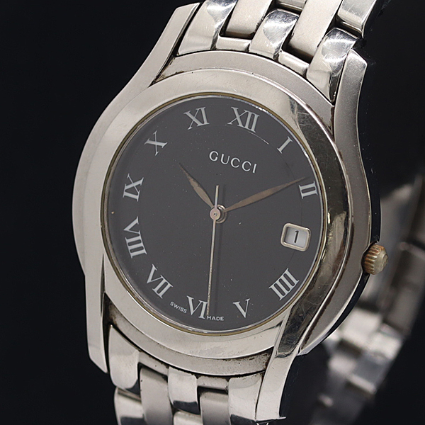 1円 稼働 グッチ 5500M QZ ブラック文字盤 メンズ腕時計 0396000 12BGT SMZ