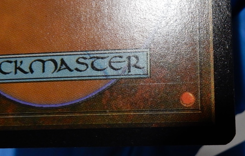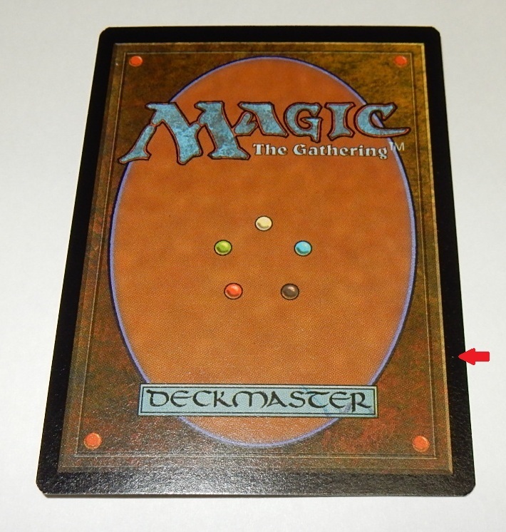 4枚目の画像の通り、カード製造過程で付いた直線の傷が、カードの端から端まで付いてしまっています。