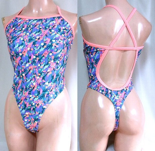 ★☆KITSCH PITCH 小花柄ブルーピンクTバック超ハイレグ水着☆★