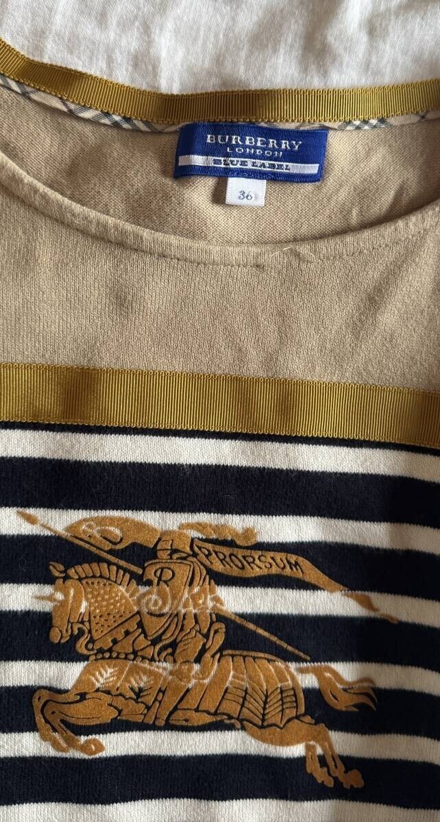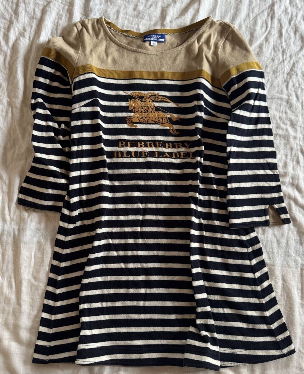 BURBERRY BLUELABEL バーバリーブルーレーベル 半袖 Tシャツ チュニック丈 表記サイズ36 ネイビー ボーダー 切り替え