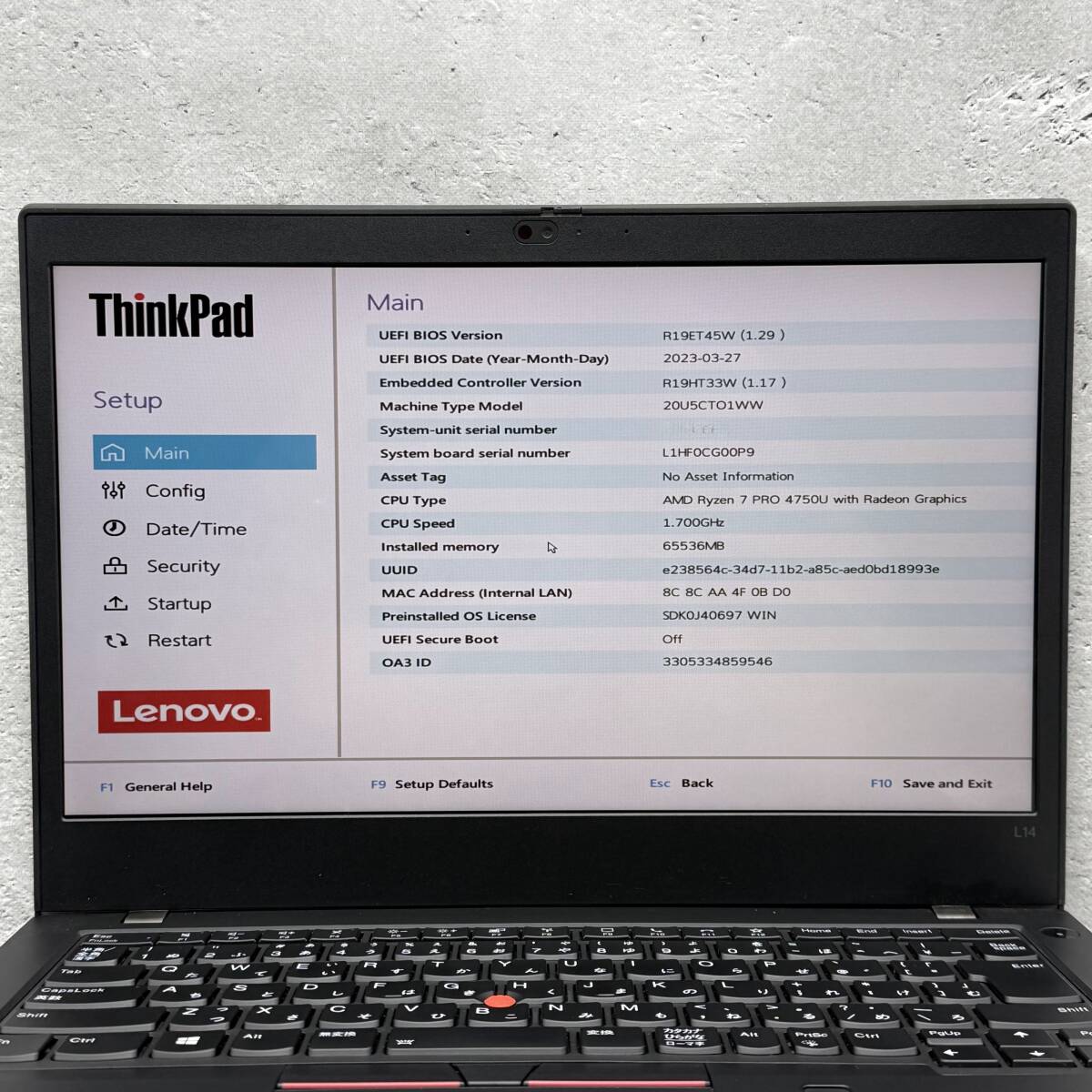 | Su-25831. LENOVO / ThinkPad L14 Gen1 / Ryzen 7PRO-4750U / AMD系CPU / 64GBメモリ / HDD無し / 14インチ / 通電確認・ジャンク | |