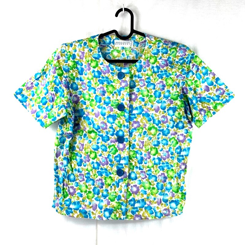 | 商品名 | ジバンシー ヌーベル ブティック GIVENCHY NOUVELLE BOUTIQUE トップス 半袖 綿100% 肩パッド 日本製 花柄 水色 黄緑 12サイズ 900591 |