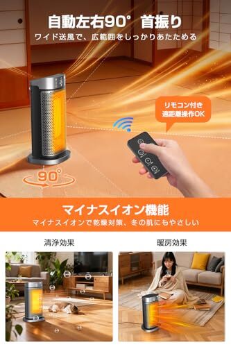 【高濃度マイナスイオン空気清浄・無臭暖房】高濃度マイナスイオン機能を搭載したセラミックファンヒーターが、暖房しながら空気もキレイに保ちます。無臭設計で快適な空気環境を維持し、結露対策や乾燥対策にも最適。お部屋・寝室・オフィスなど、どんな場所でも清潔で心地よい暖房空間を実現します。
