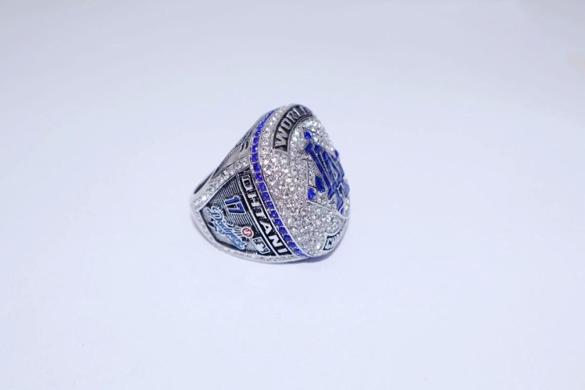 リング上部には「LA」ロゴ、側面には「2025」「Dodgers」「OHTANI」「背番号17」などが細かく再現されており