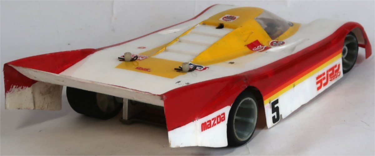 たぶんRX-3000へEXL-480Kのコンバージョンキットをつけたものだと思われます。出品は画像の物のみです。他に必要なものがあればご自分でご用意ください。使用品ですので擦り傷や汚れがあります。ボディは塗装の色落ち、傷や汚れありますし、穴が多数空いています。シャーシは切り込み入っていますし、アルミパーツなどは軽量化のために削られています。ある程度はクリーニングしました。床に置いて押せば駆動系は動作しています。多少はパーツの不足があると思われます。あとは画像をご覧になってご判断ください。分かる事は以上です。お取引後は一切のサポートはしておりませんので問題があればご自分でご対処ください。お取り引き後に説明以外の不足品や説明以外の破損や故障が有ったとしても返品は出来ませんしクレームもお受けできません。問題があれば全てご自分でご対処ください。