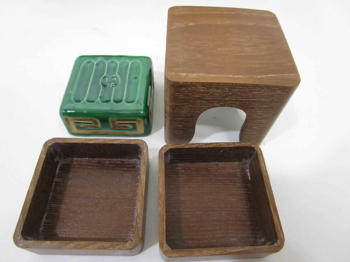 【箱無特価】中古茶道具!  茶道七事式の 女桑 香盆 (桑重香合・青楽火入)のセットです。 箱無。即決品。どうぞ 宜しく。