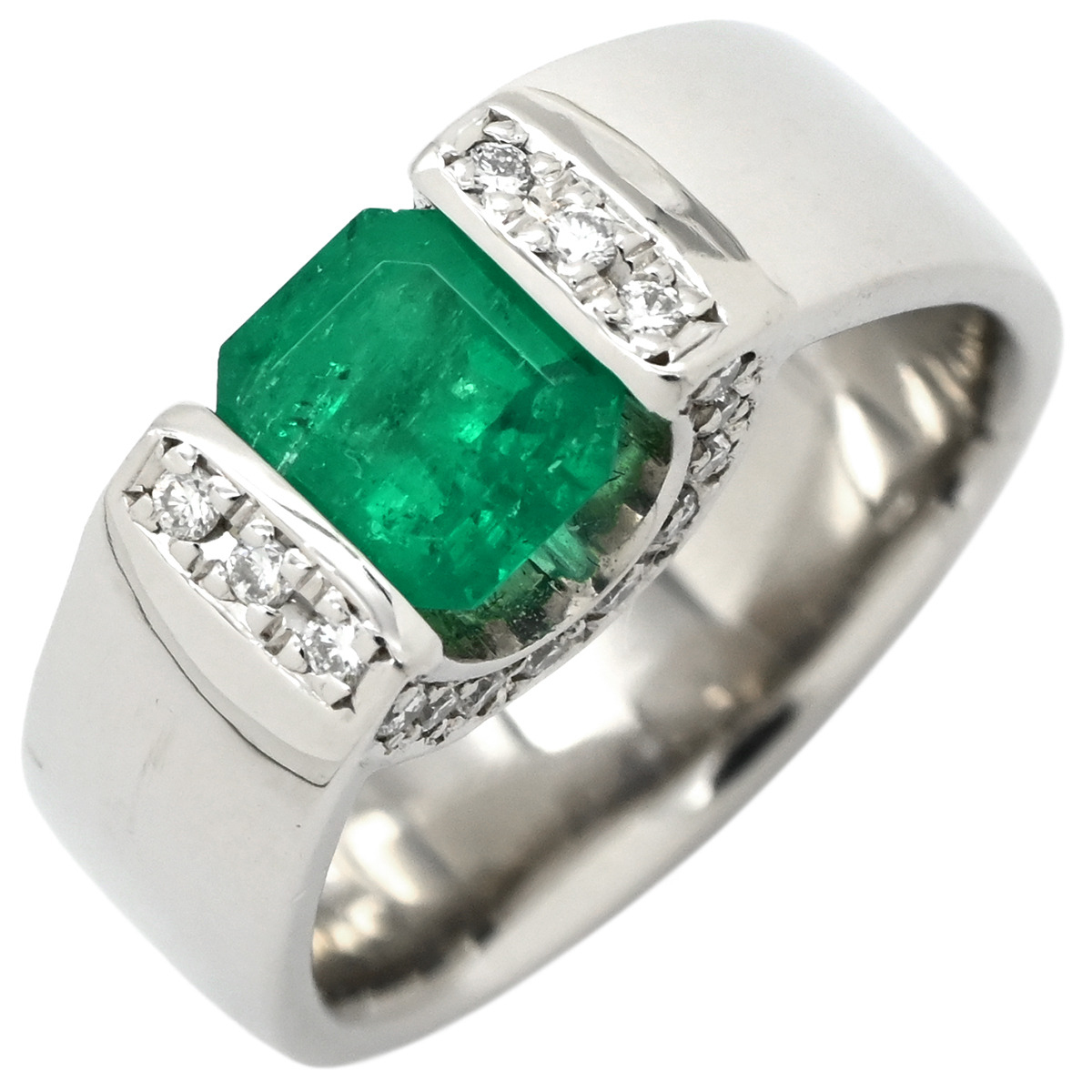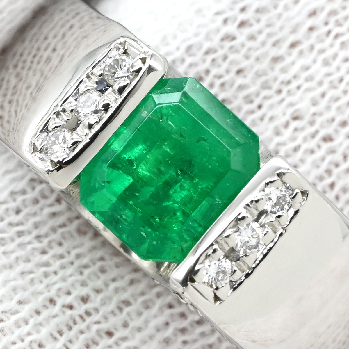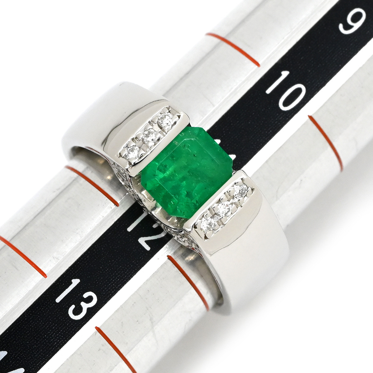 リング 指輪 エメラルド ダイヤモンド リング Pt900 シルバー グリーン 緑 スクエア プラチナム 中古