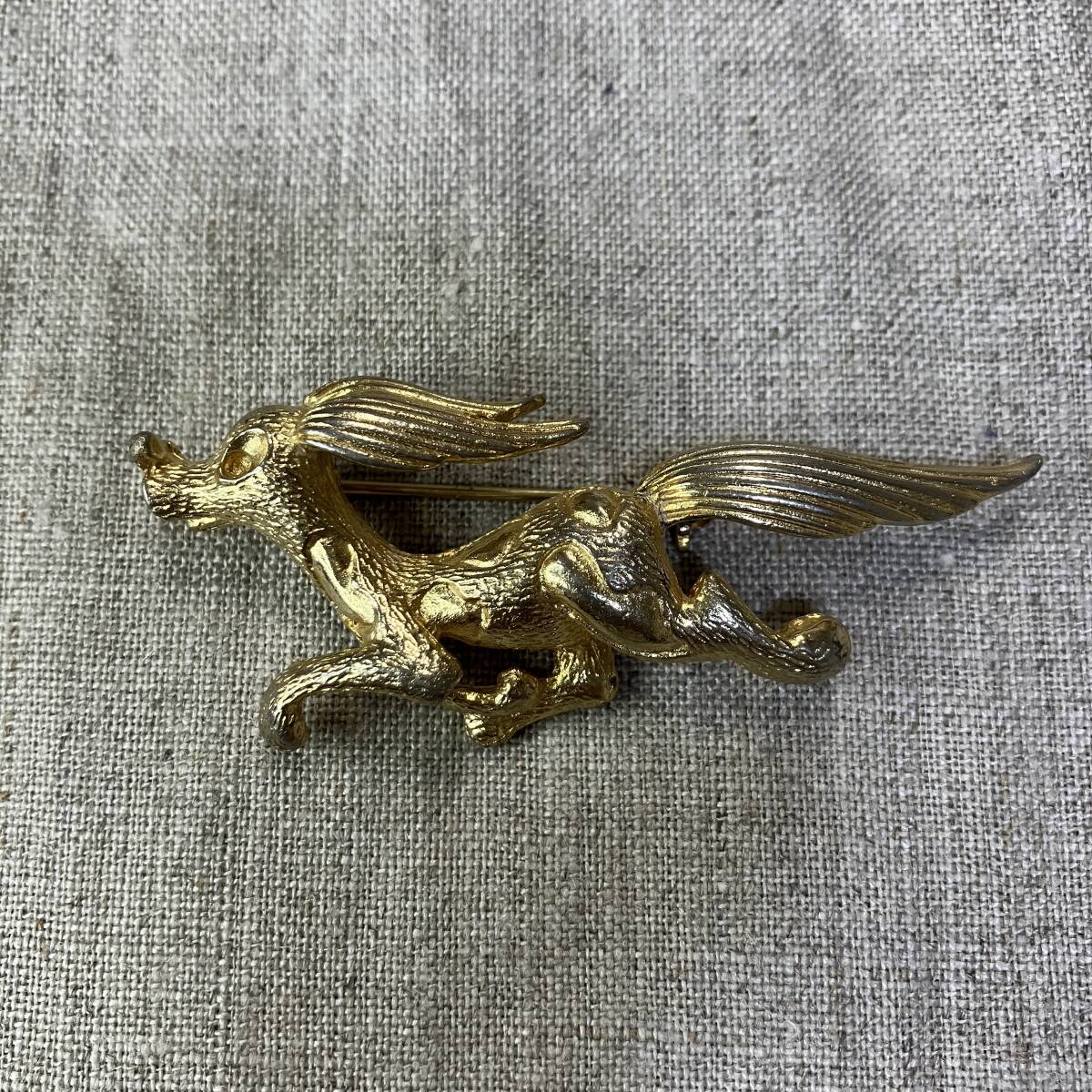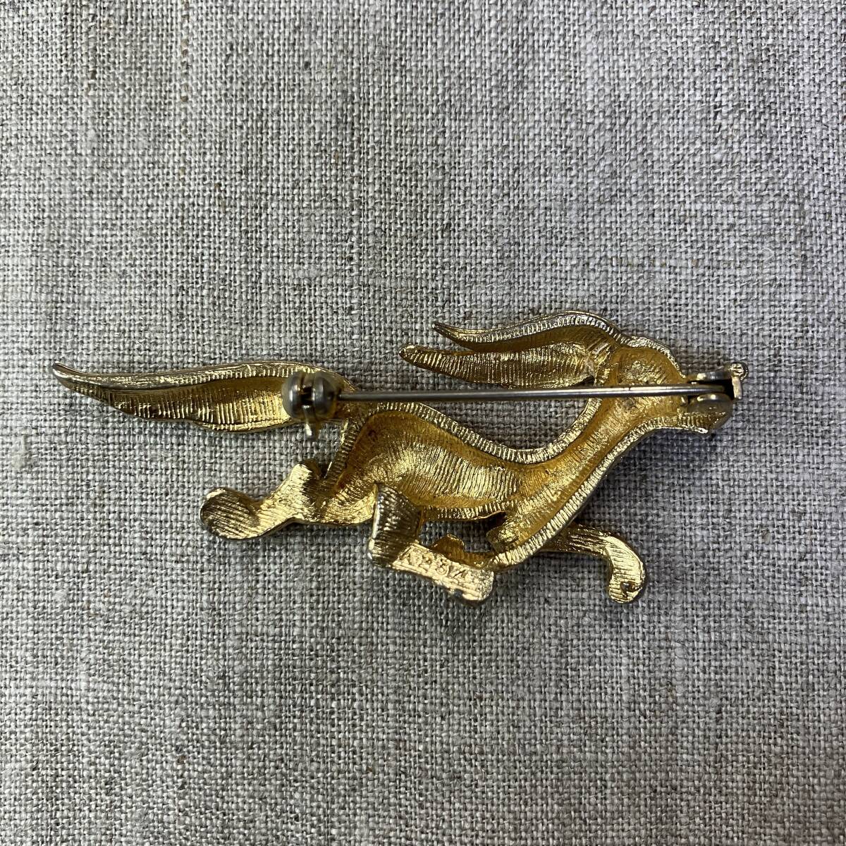【一点もの】ブローチ 走る 獣 犬 モチーフ ゴールドカラー 躍動感 ヴィンテージ 刻印入り 中古 良品