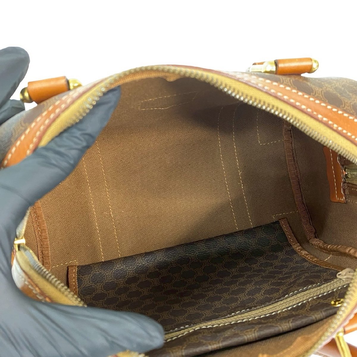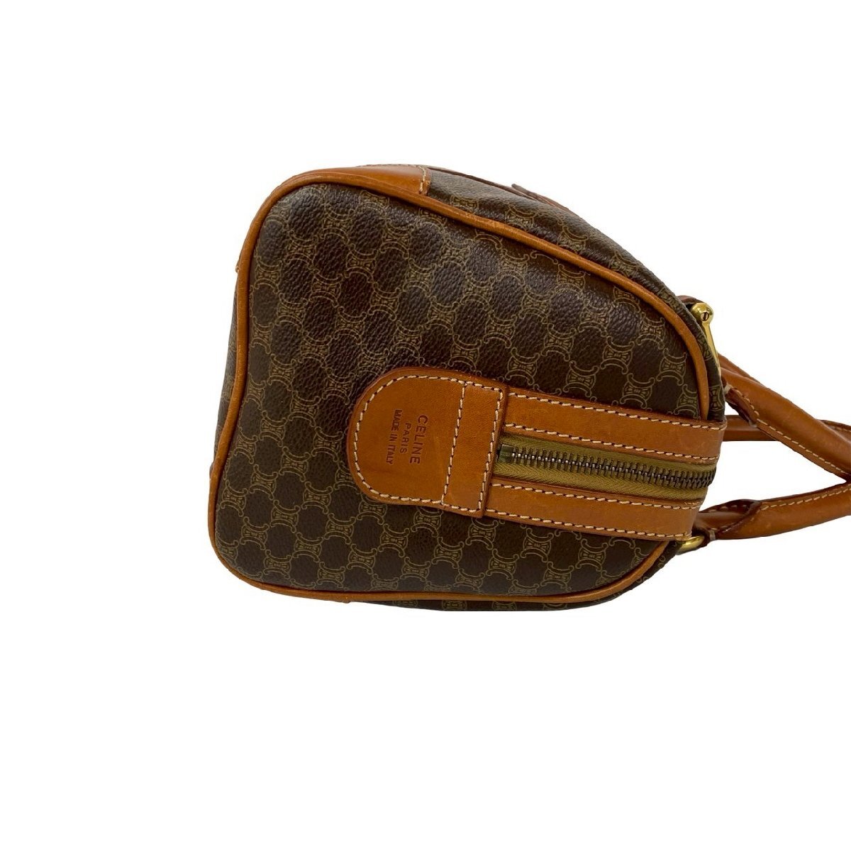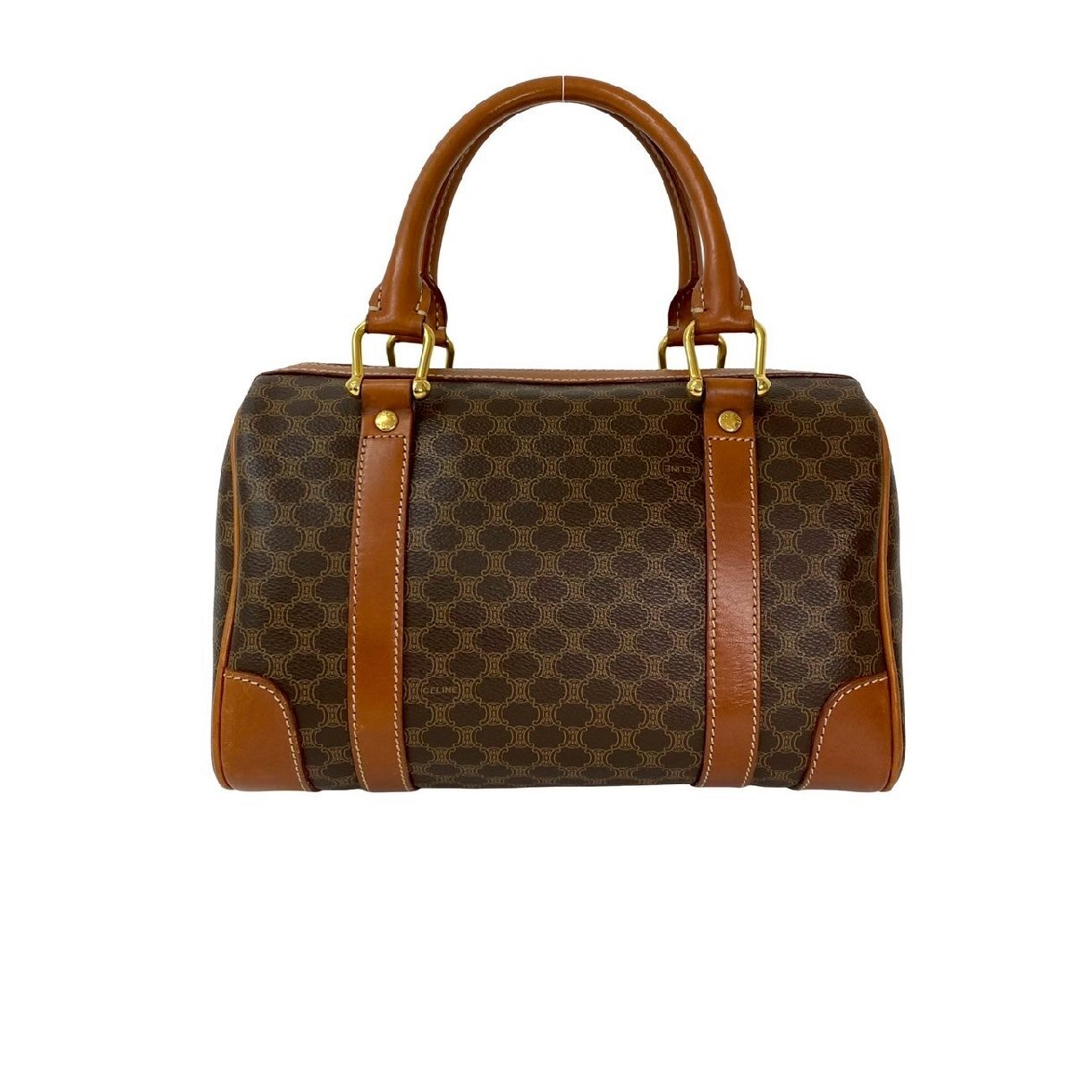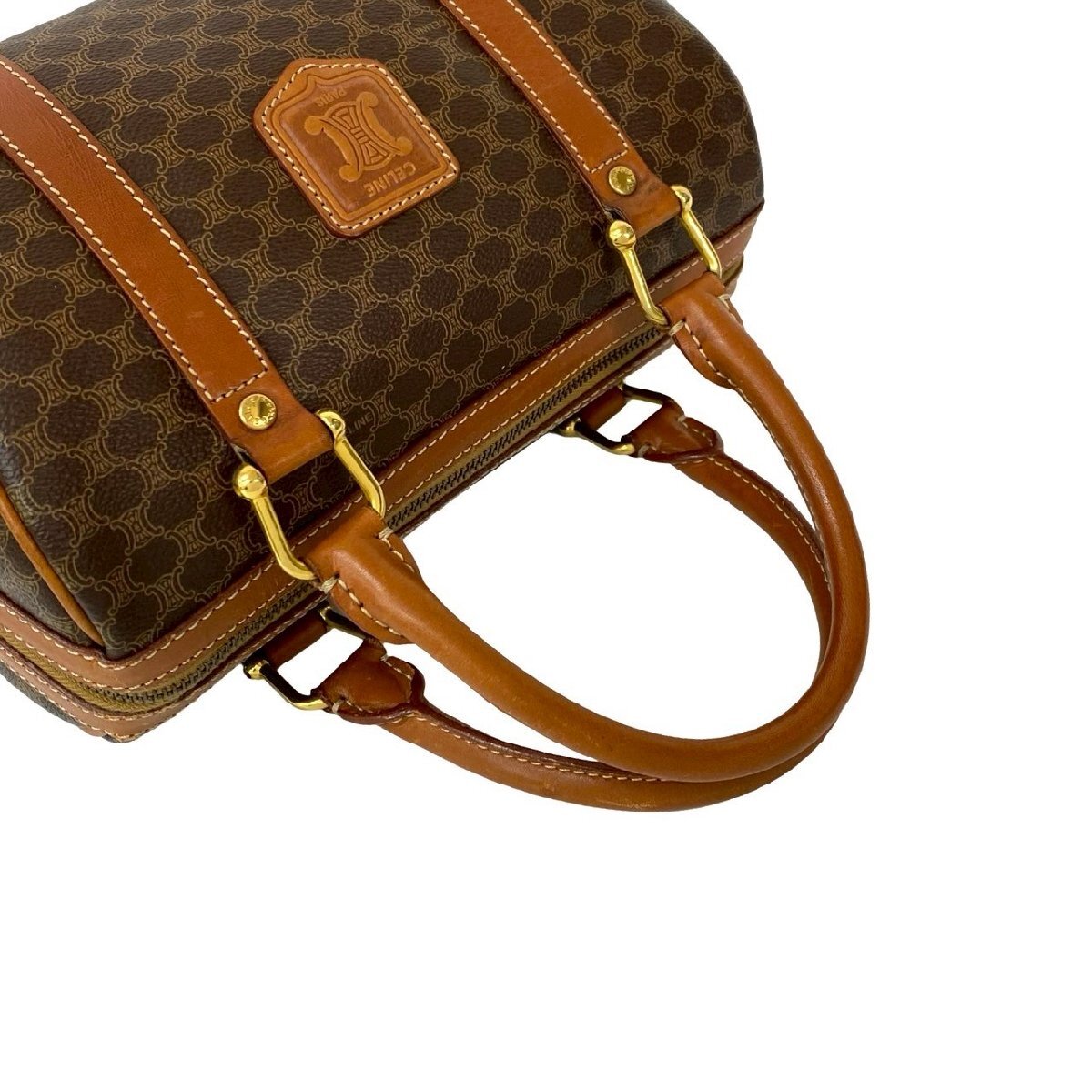 極 美品 CELINE セリーヌ ヴィンテージ マカダム 柄 トリオンフ ロゴ レザー 本革 ハンドバッグ ミニ ボストンバッグ ブラウン 32-10