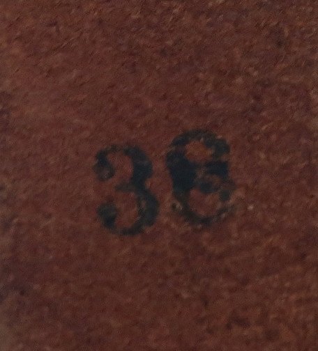 レザーにスレとひび割れ、剥がれと薄シミ、