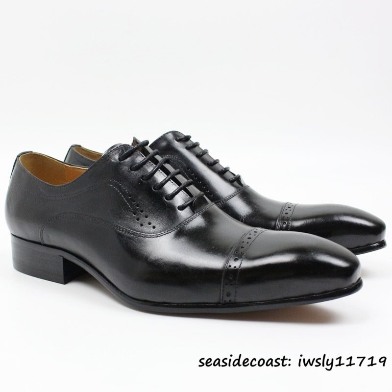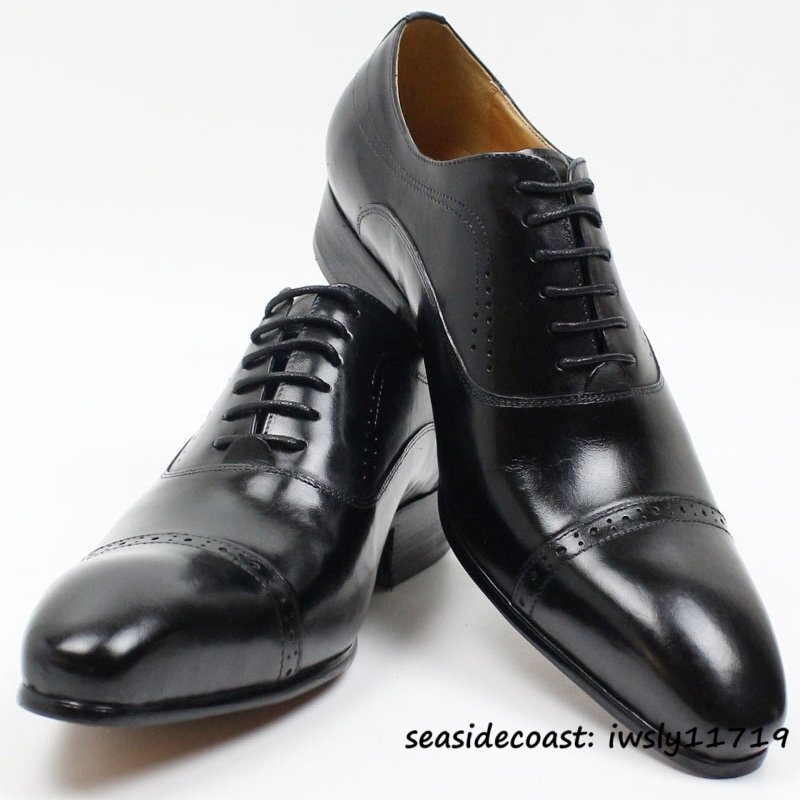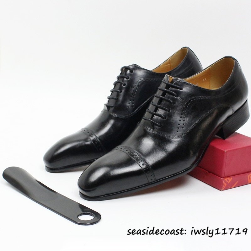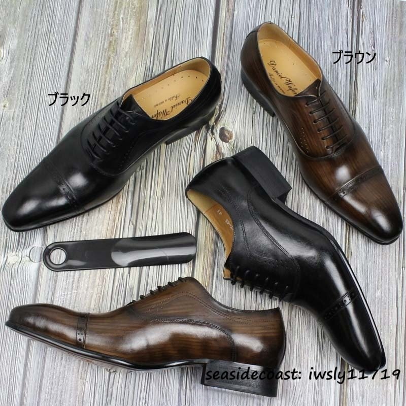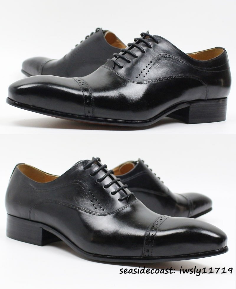 最高級■本革 メンズ レザーシューズ ビジネスシューズ 職人手作り 上質牛革 紳士靴 革靴 フォーマル 新品 ドレスシューズ ブラック 26.0cm