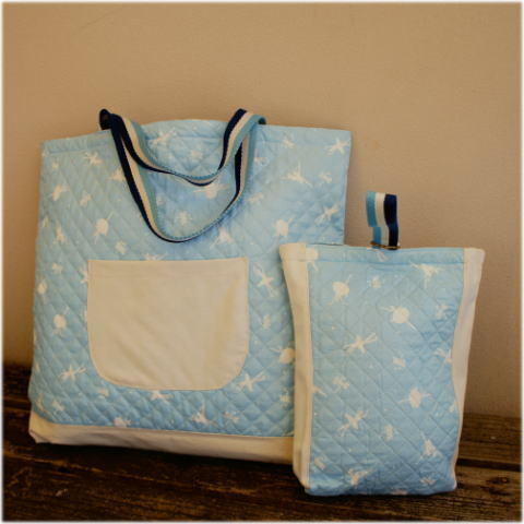 入園、入学 2800円ダンサー(ブルー)キルトシューズバッグ とレッスンバッグセット