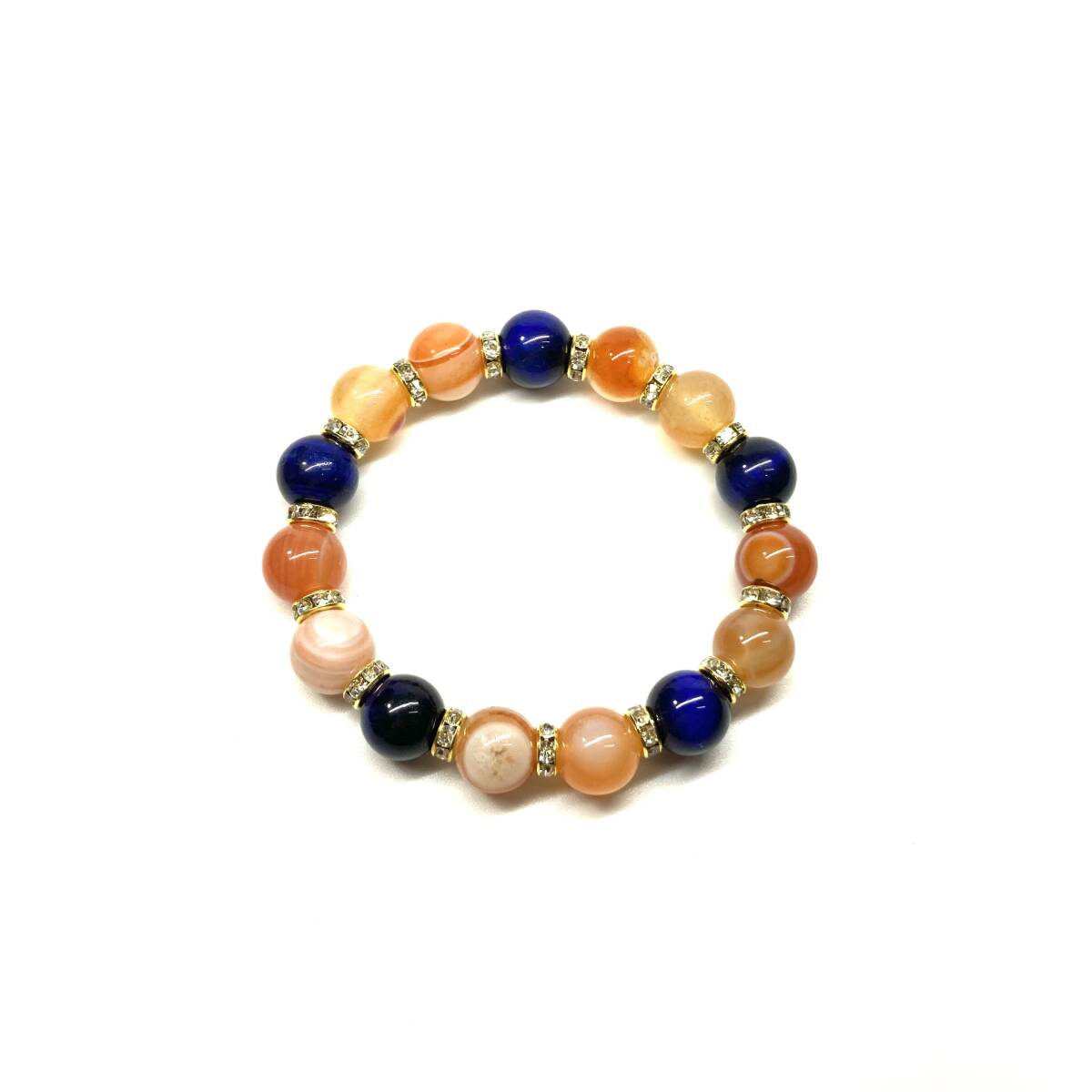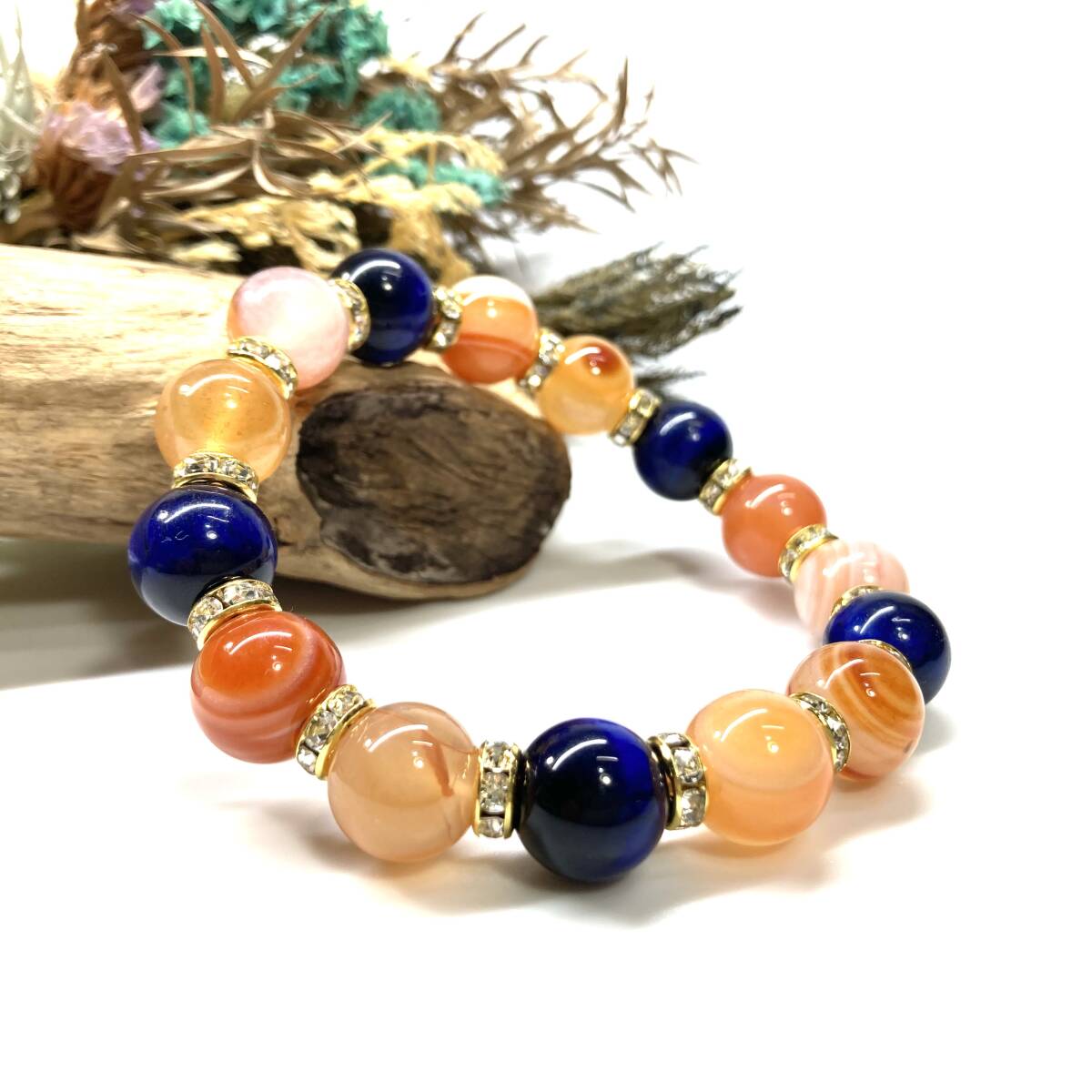 こちらは、ブルータイガーアイとカーネリアン・サードニクス(サードオニキス)を組み合わせたパワーストーンブレスレットです。間にはロンデルを挟み高級感あるデザインに仕上げております。石大きさは12mm玉を使用して内周約18cmです。気になる方は是非この機会にどうぞ。