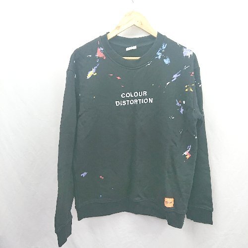 ◇ ⊇ ZARA ザラ ペイント柄 綿100% 長袖 トレーナー サイズM ブラック レディース E