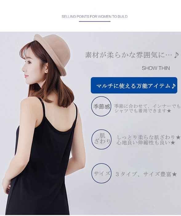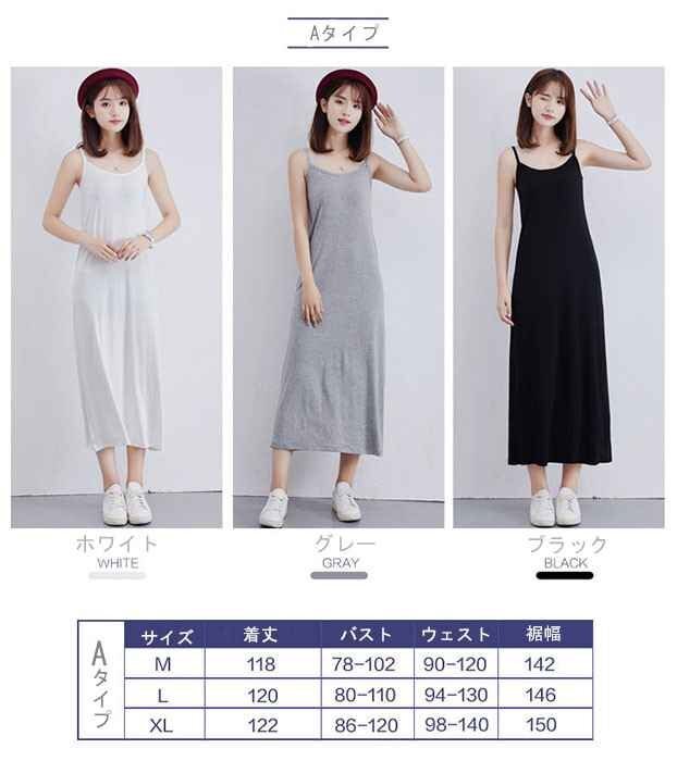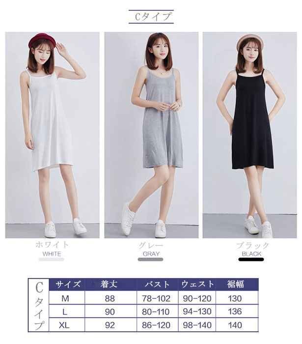 ※サイズ表の「着丈」はキャミソールの紐部分をのぞいた長さです。
