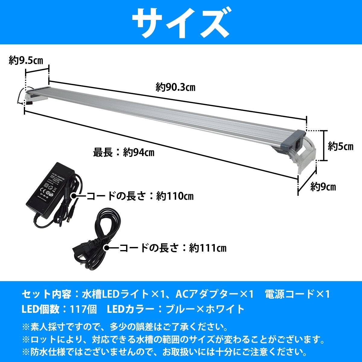【新品即納】90cm-95cm 水槽用 照明 LED ライト ブルー×ホワイト 青/白 シルバー枠 アクアリウム ライト LED 照明 水槽 サンゴ 熱帯魚
