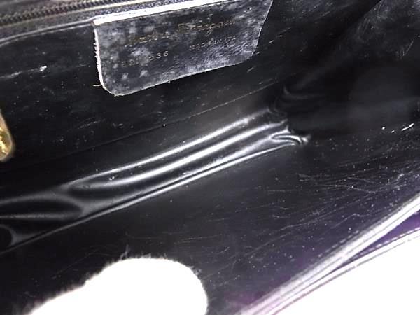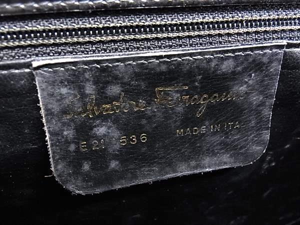 1円 Salvatore Ferragamo フェラガモ ガンチーニ パテントレザー ワンハンドル ハンドバッグ レディース ブラック系 FT3888