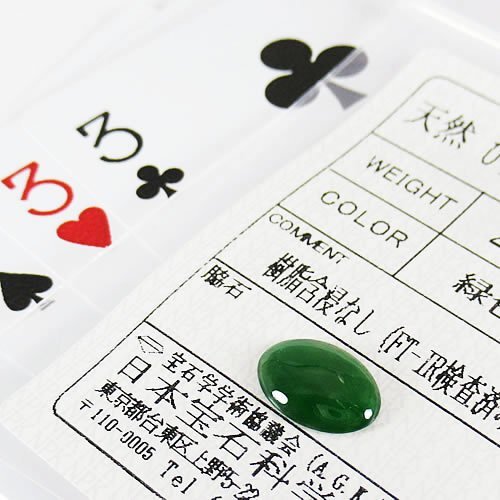 | 品名 /【SJ】新品 ヒスイ(ジェイダイト) 2.07ct ジュエリールース 材質 / 天然ヒスイ(ジェイダイト) 縦・横 / (約)11.4mm 8mm 厚さ / (約)2.7mm 総重量 / 2.07ct 日宝協ソーティング付き 【SJ】/ 新品製品 品番 / ACD681 参考小売価格 / 193,000円 |