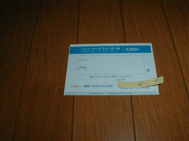 商船三井さんふらわあ フェリーサービス共通クーポン券 5000円割引券 株主優待 有効期間2026/1/1~2026/12/31迄