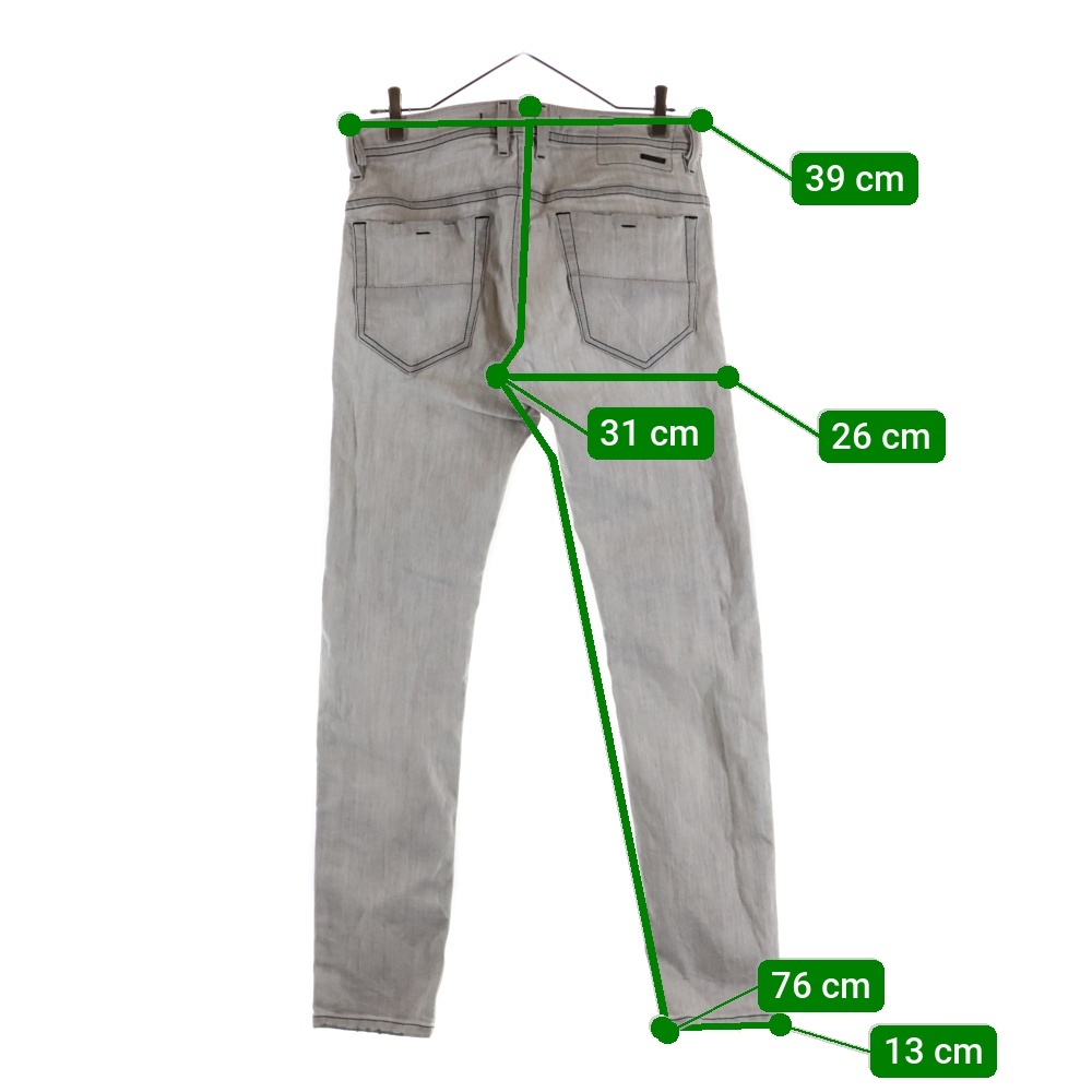 実寸 ウエスト:39センチ ワタリ:26センチ 股上:31センチ 股下:76センチ 裾幅:13センチ