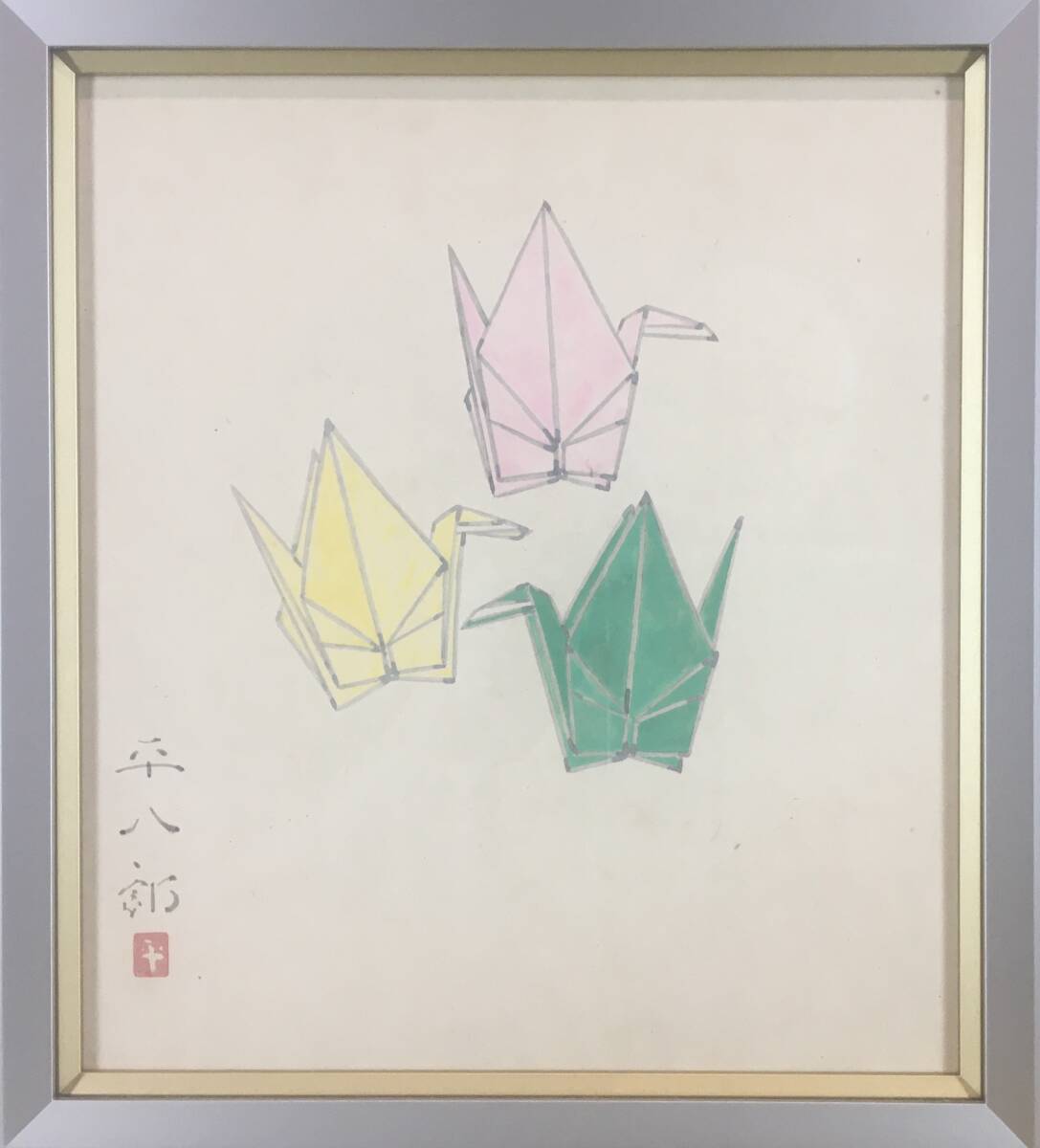 真作![福田平八郎・折鶴・共板]/文化勲章/大分市出身