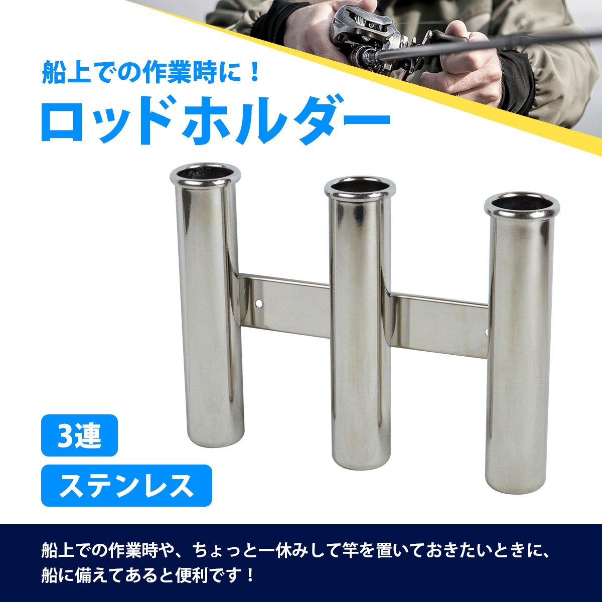 3連 ステンレス製 ロッドホルダー 釣り 竿 置き 受け 船 ボート 漁船 ロッド スタンド 海 フィッシング ホルダー 1本 1個