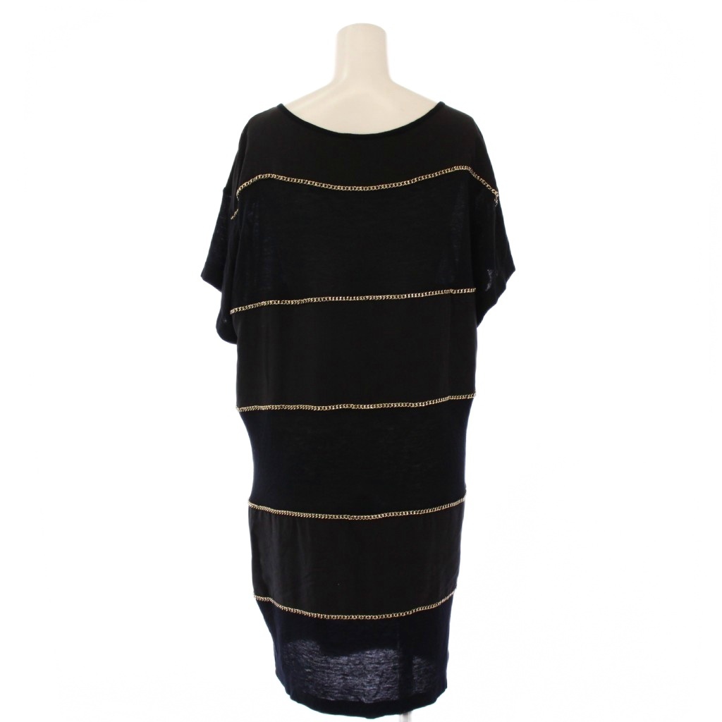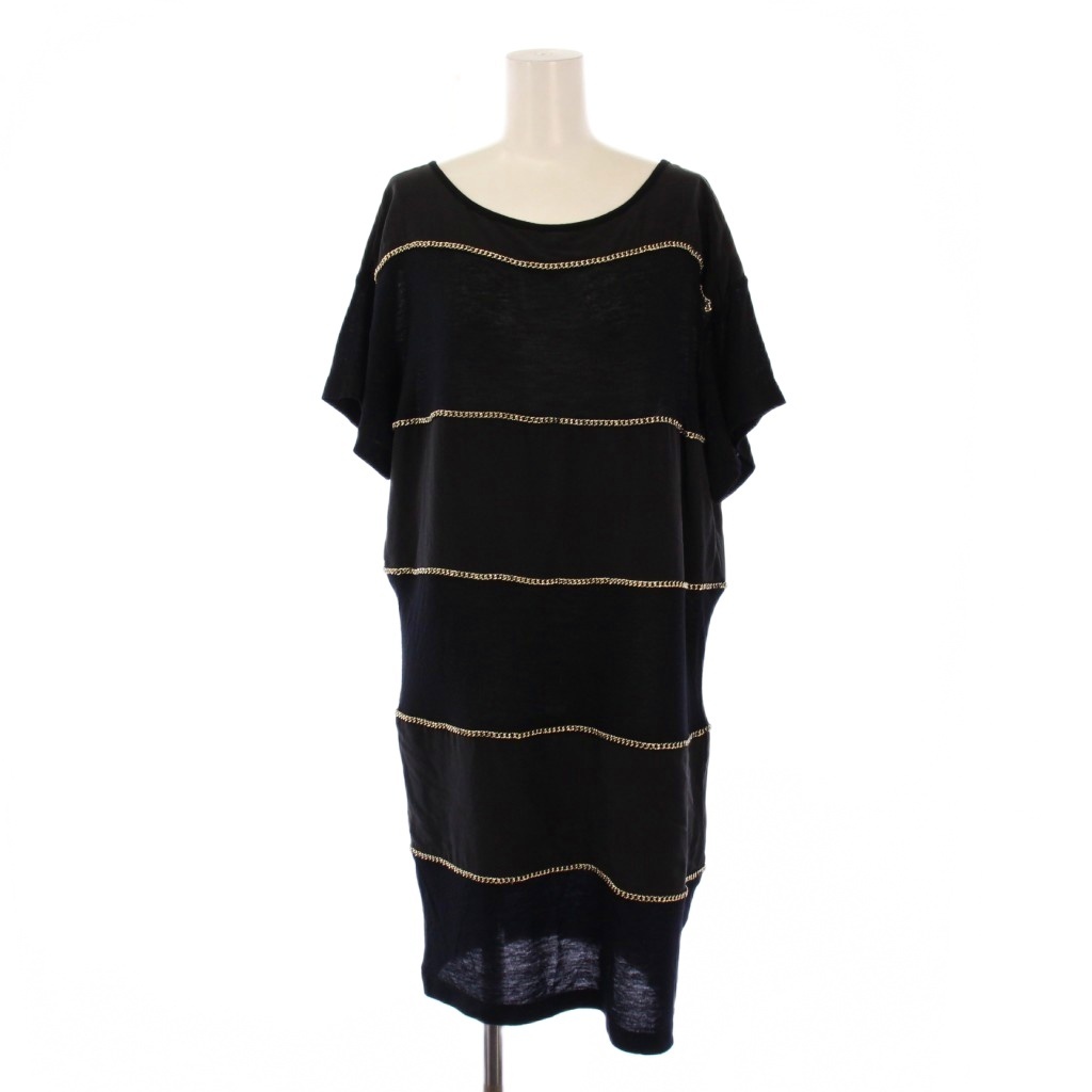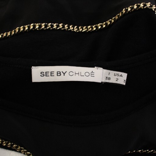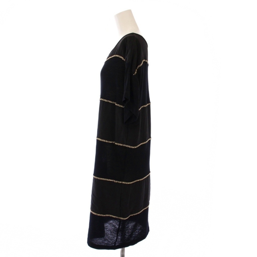 シーバイクロエ SEE BY CHLOE ワンピース ひざ丈 半袖 クルーネック シルク ニット 切替 チェーン 装飾 ウール混 I38 黒 ブラック