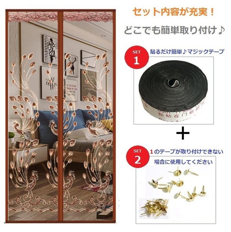 1スタ☆貼るだけ☆どこでも設置OK!網戸カーテン 100cm×200cm マグネット 蚊 害虫 マジックテープ 目隠し 虫よけ ネット I-050