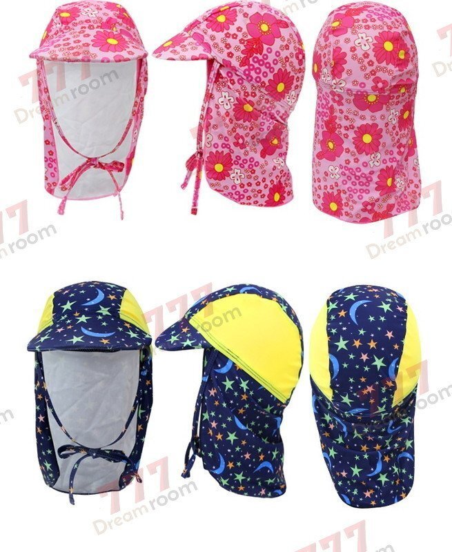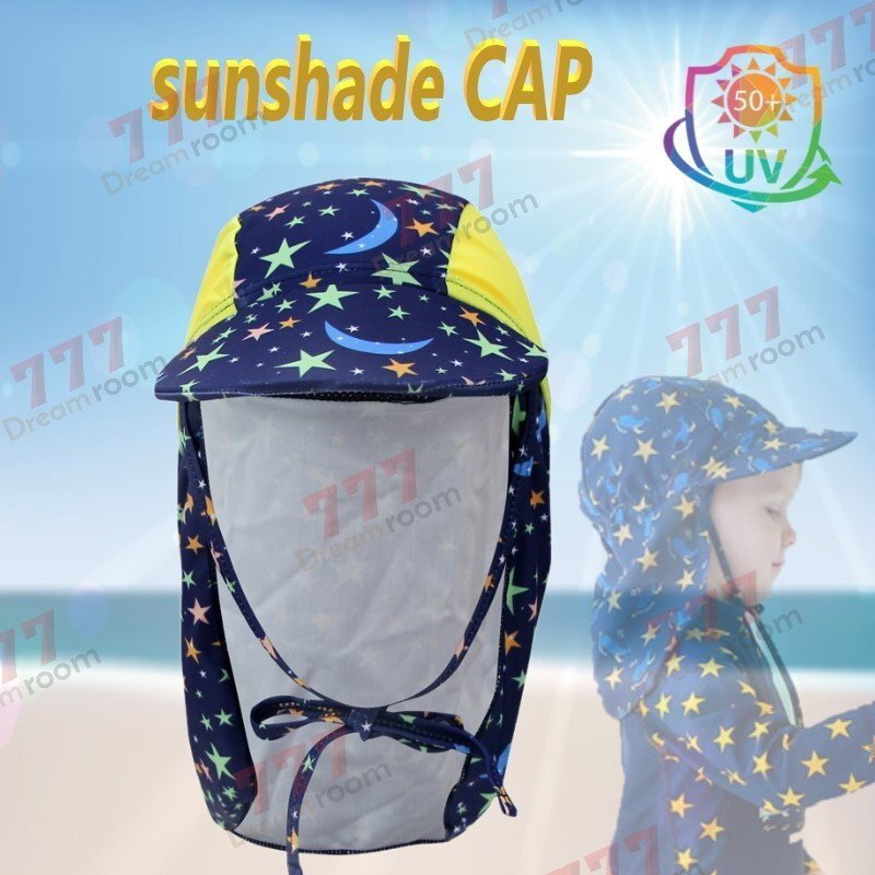 kids UPF50+ サンシェード スイムキャップ UVカット【05】 帽子 日焼け防止 日よけ 海水浴 公園 ツバ フラップ あご紐付き