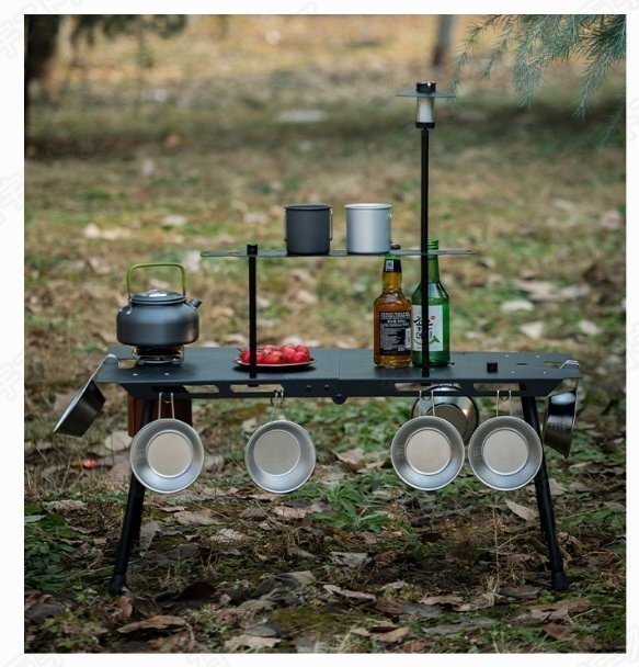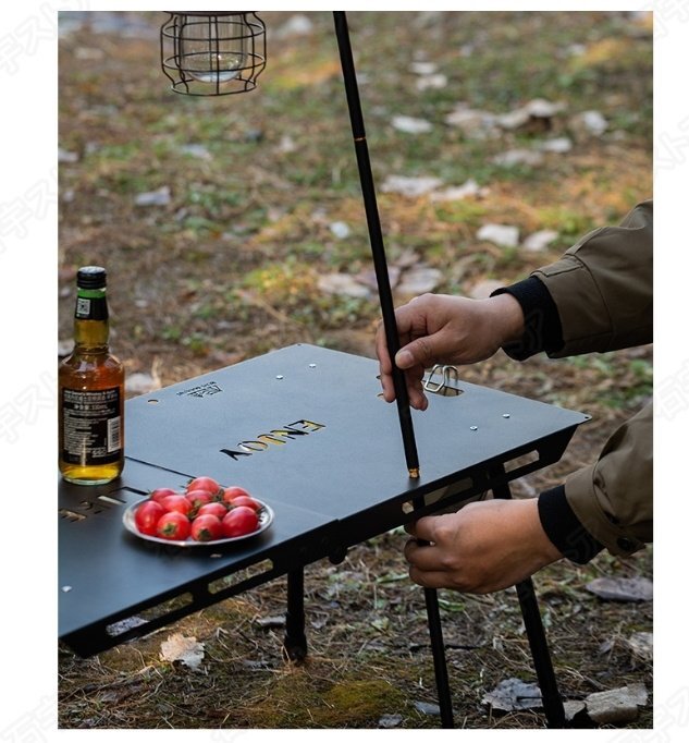 新品超激レア キャンプ用 高品質 折りたたみテーブル 炭素鋼製 高さ調整36-57cm 天板40×80cm 耐荷重30kg アウトドア ブラック shw290
